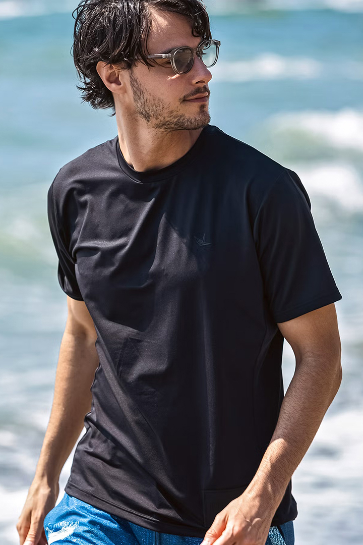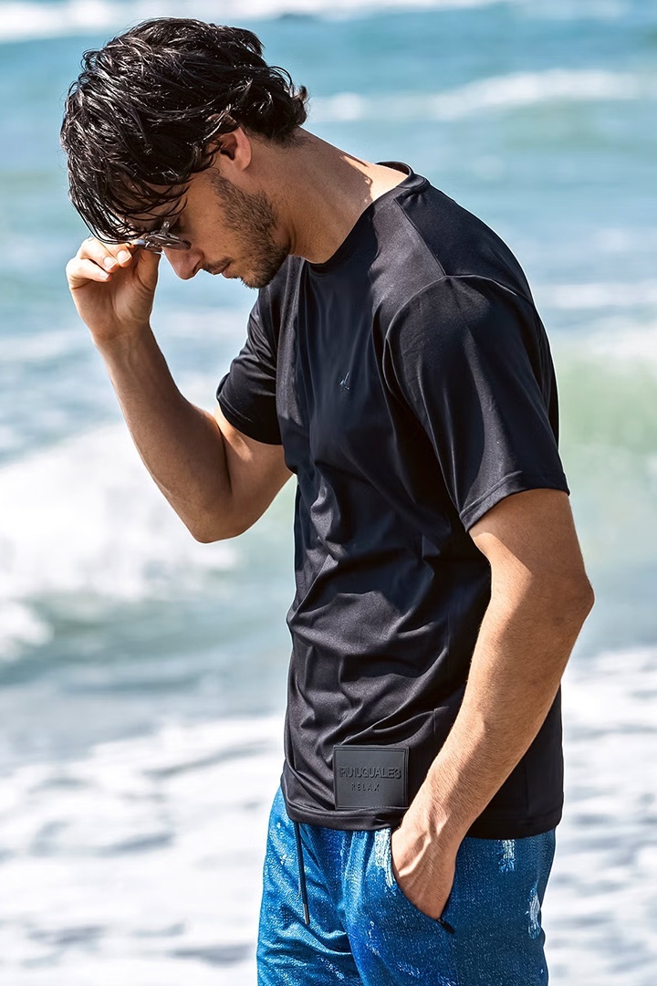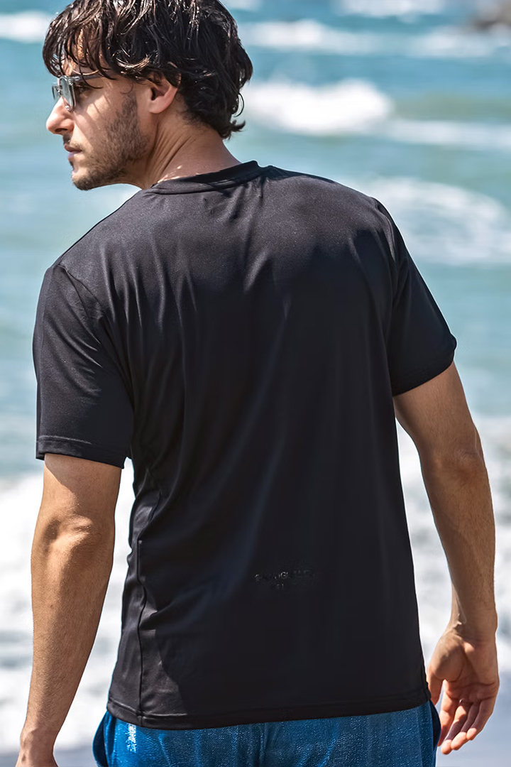 1piu1uguale3 RELAX ウノピゥウノウグァーレトレ リラックス ラインロゴラッシュガード半袖Tシャツ{-BFS} [UST-26044-BLK]