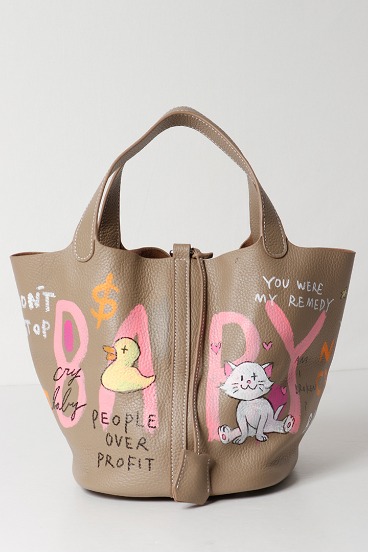 アーティスト、乾シンイチロウ(Shinichiro Inui)によりハンドペイントが施されたレザーバッグ。