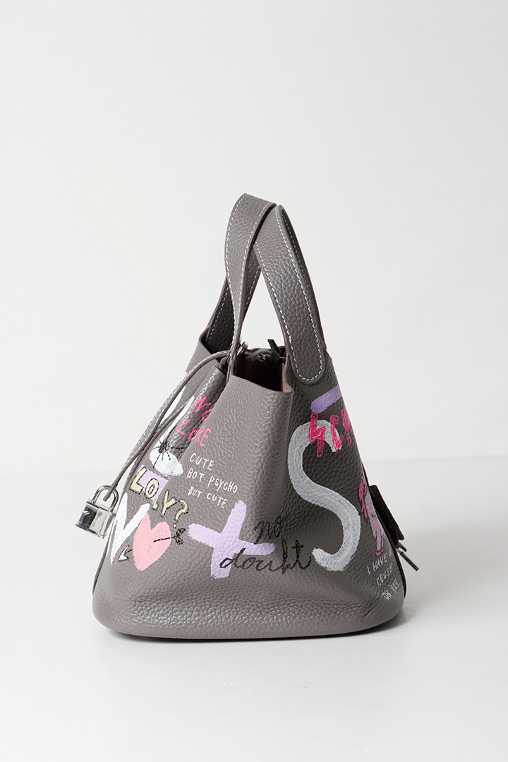 アーティスト、乾シンイチロウ(Shinichiro Inui)によりハンドペイントが施されたレザーバッグ。