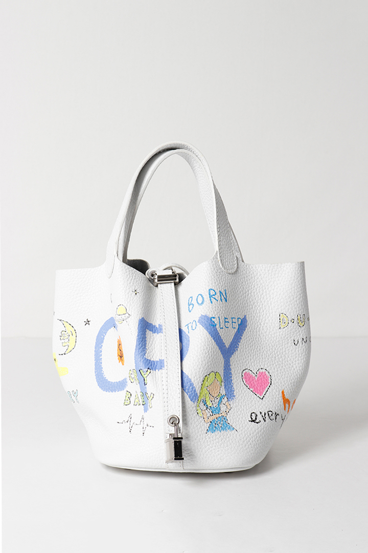 アーティスト、乾シンイチロウ(Shinichiro Inui)によりハンドペイントが施されたレザーバッグ。