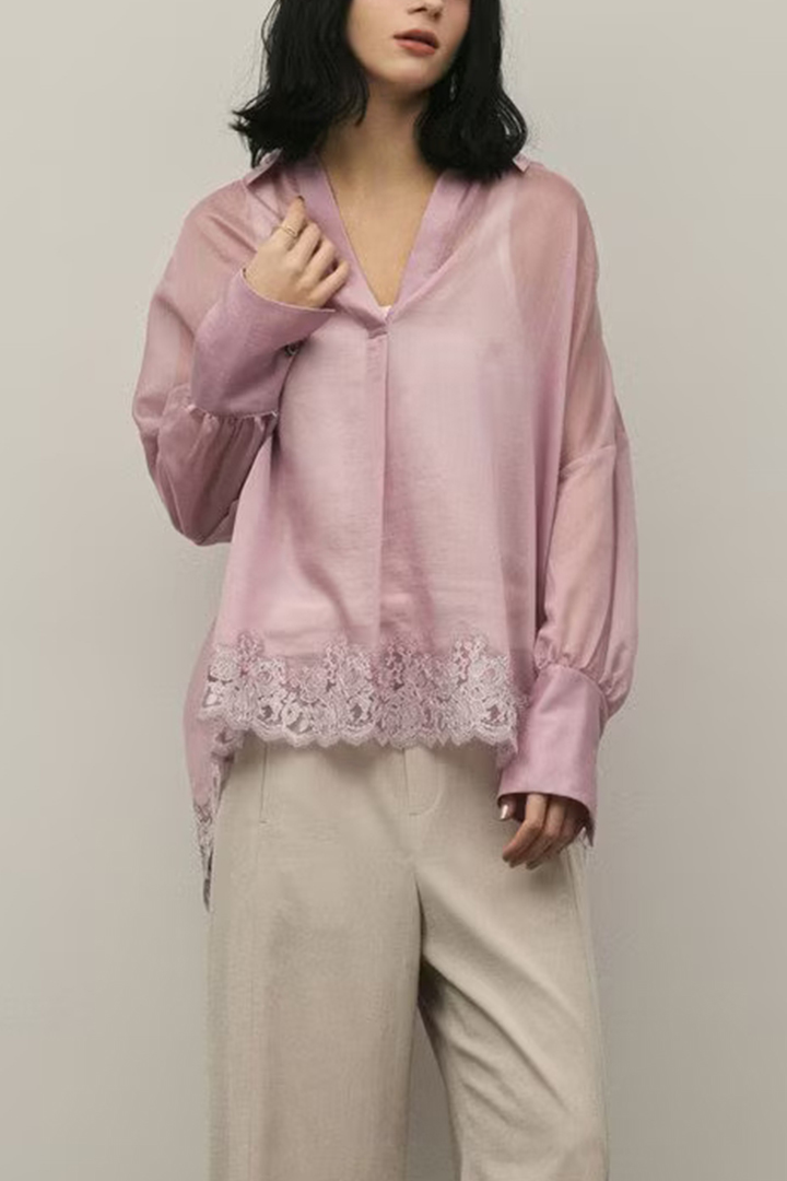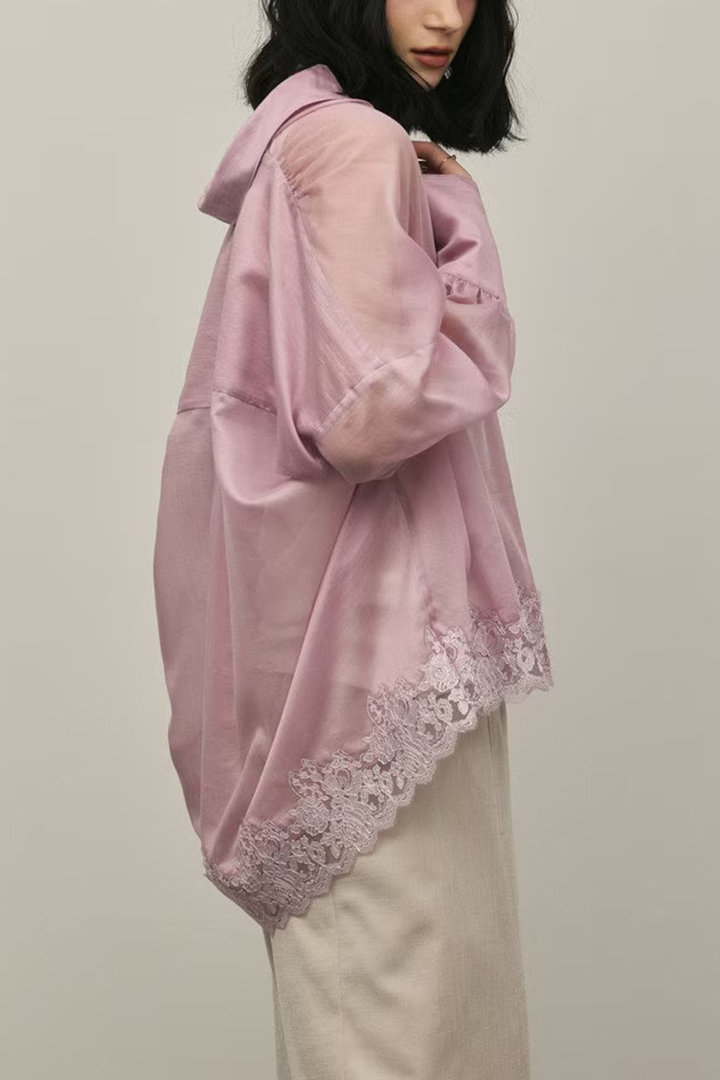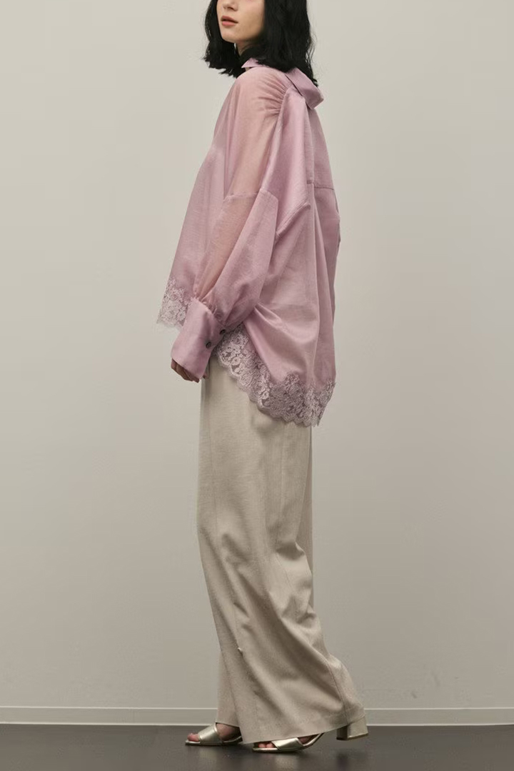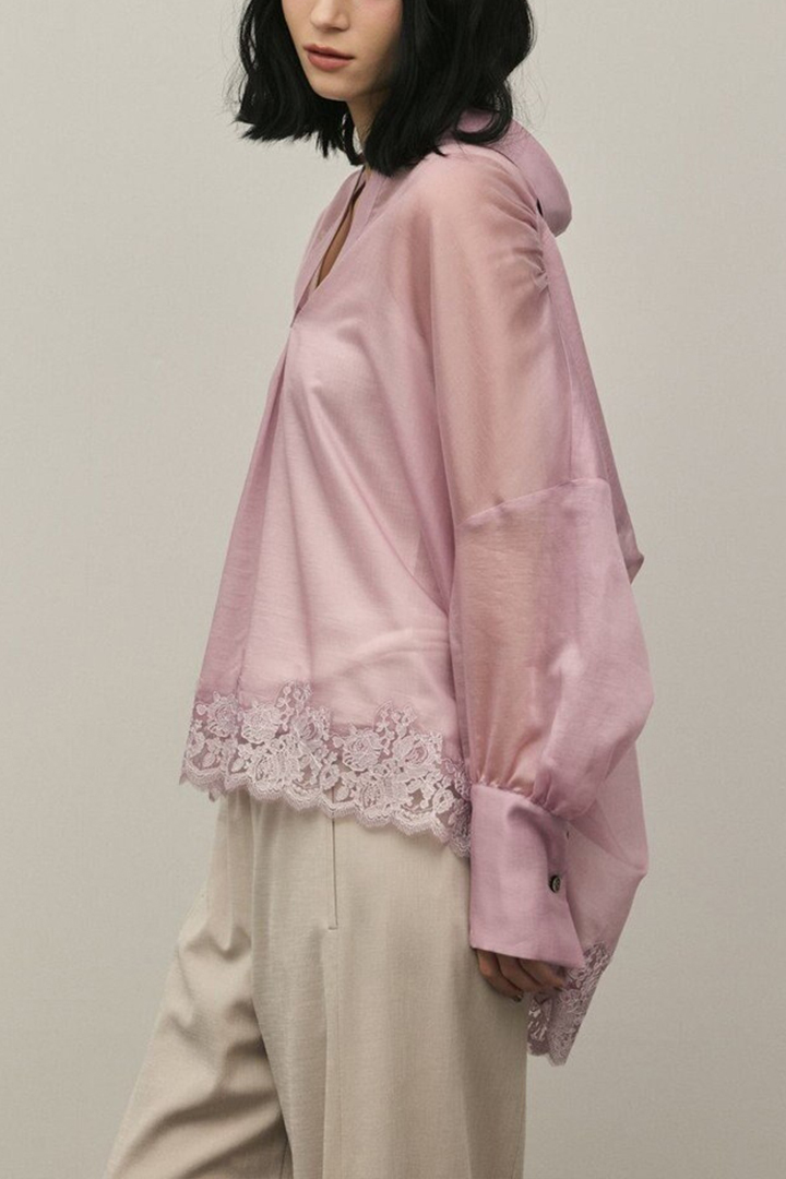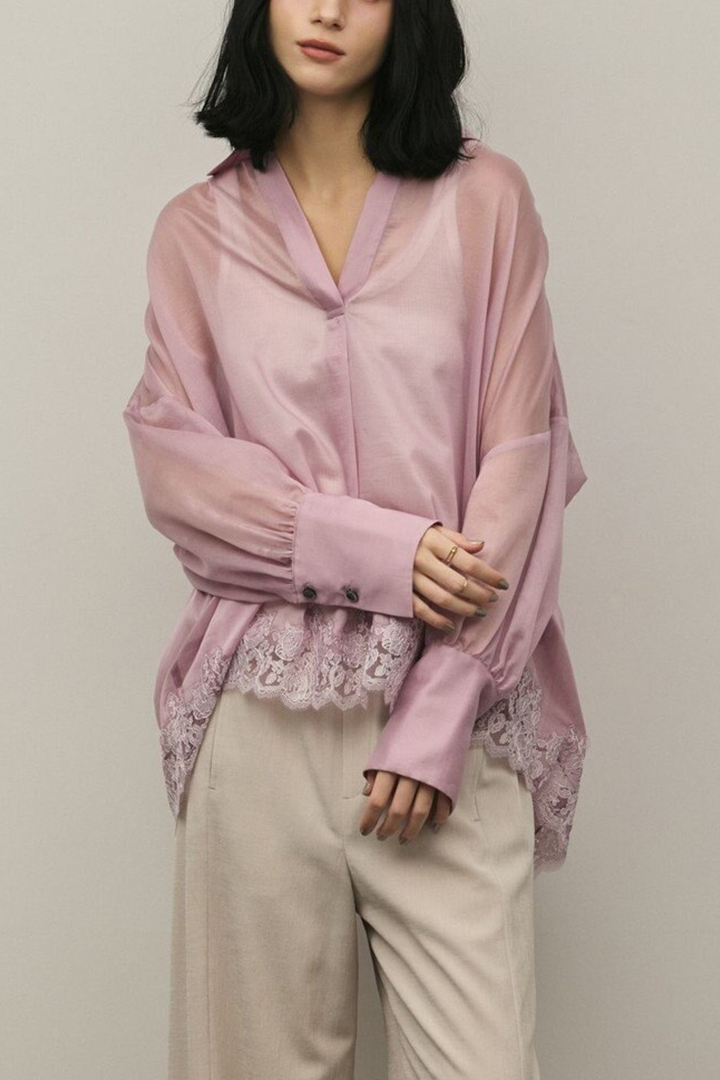 肩のギャザーと裾に施した繊細なレースが優しい印象を与え、クラス感溢れる着こなしを叶えます。