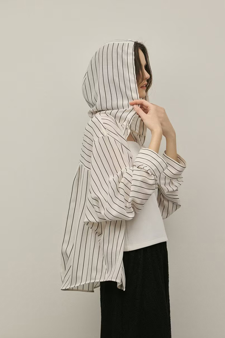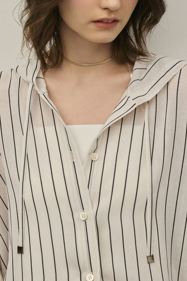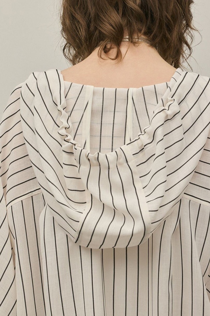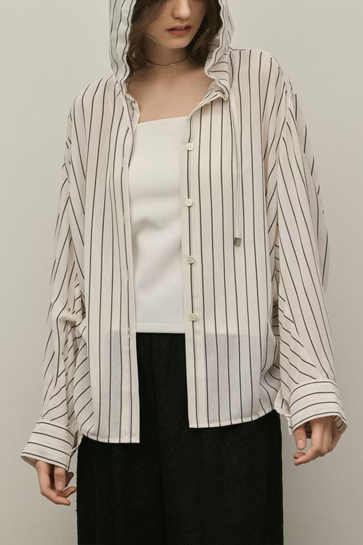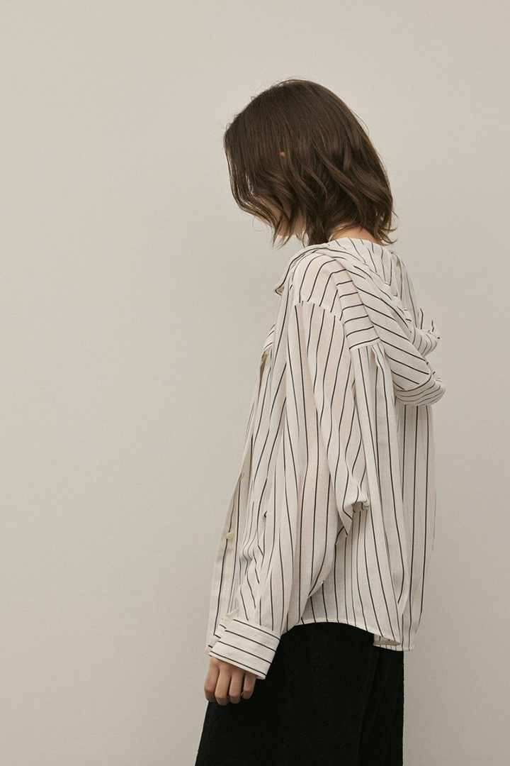 女性らしいニュアンスと抜け感が手に入る、春夏にぴったりなフード付きのデザインシャツ。