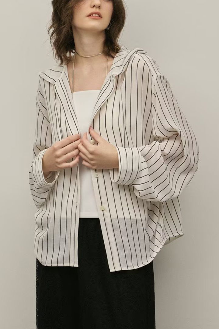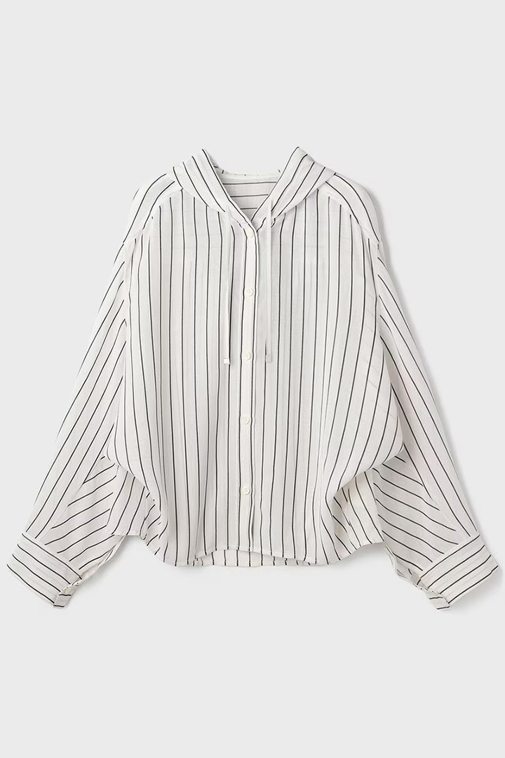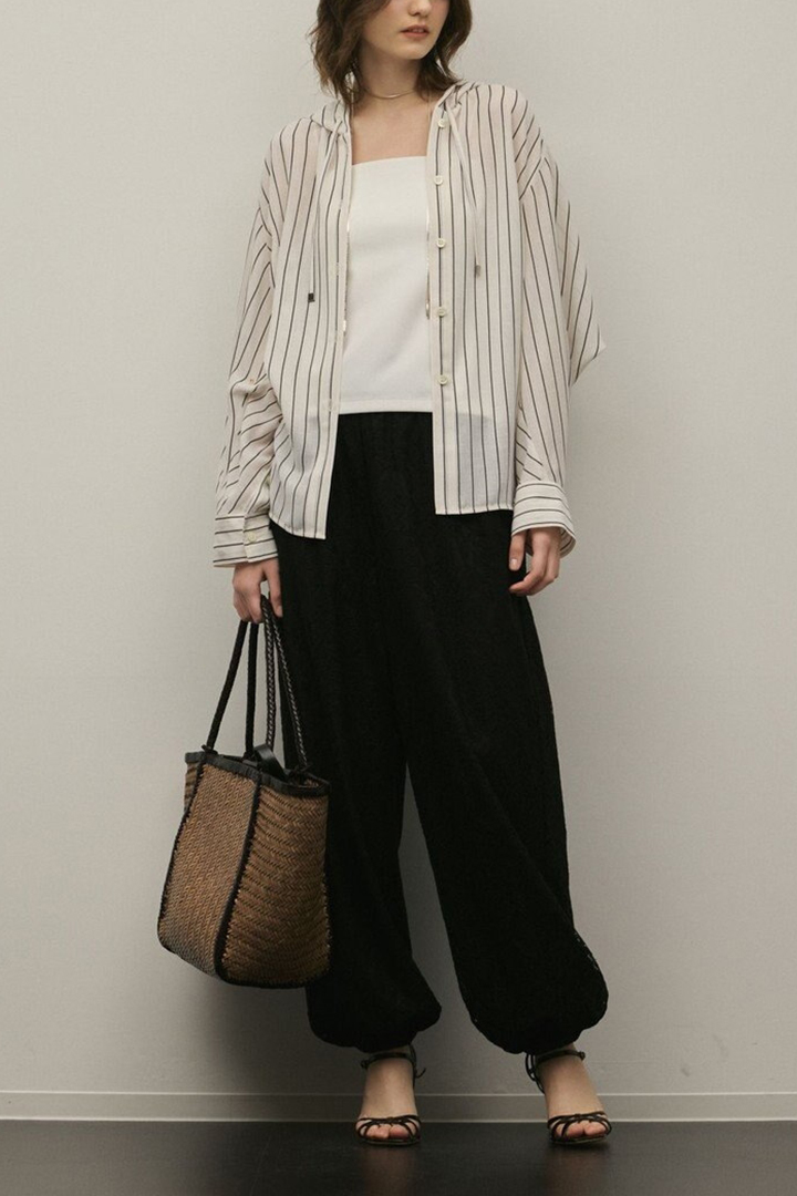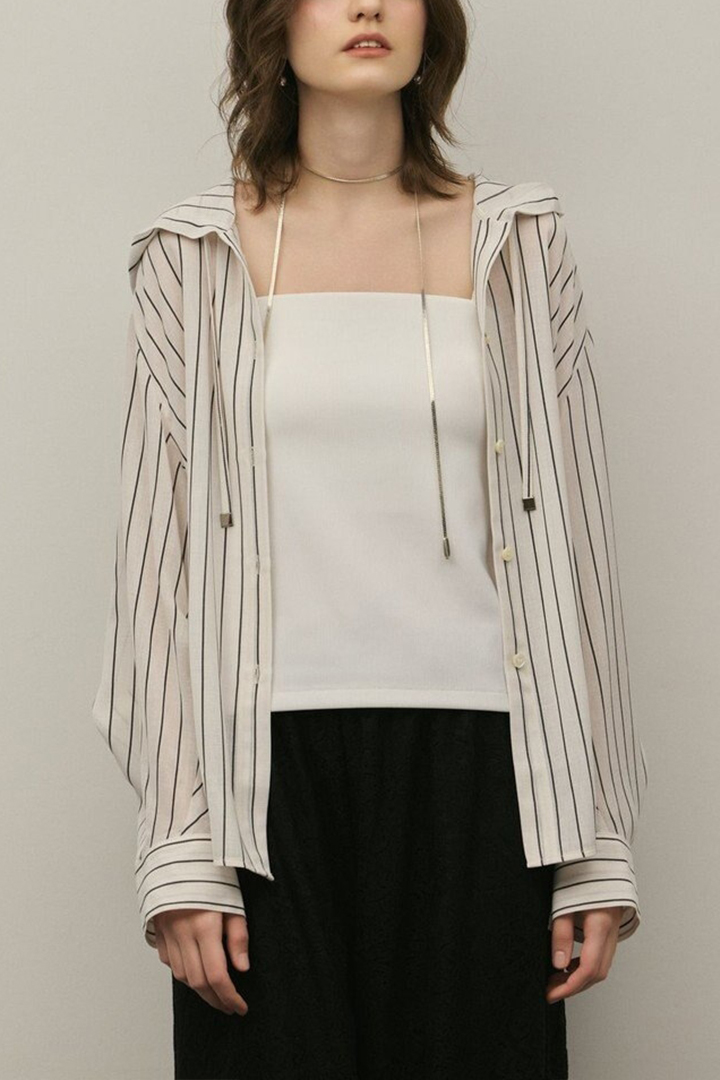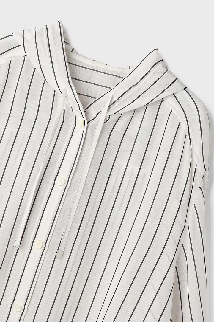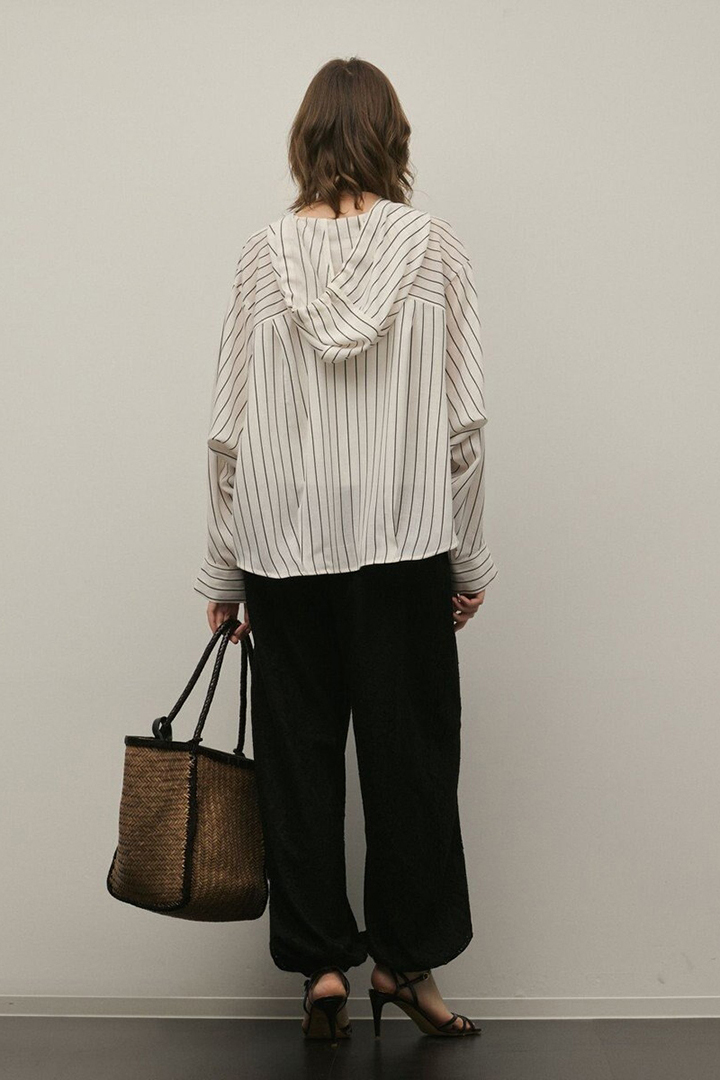 女性らしいニュアンスと抜け感が手に入る、春夏にぴったりなフード付きのデザインシャツ。
