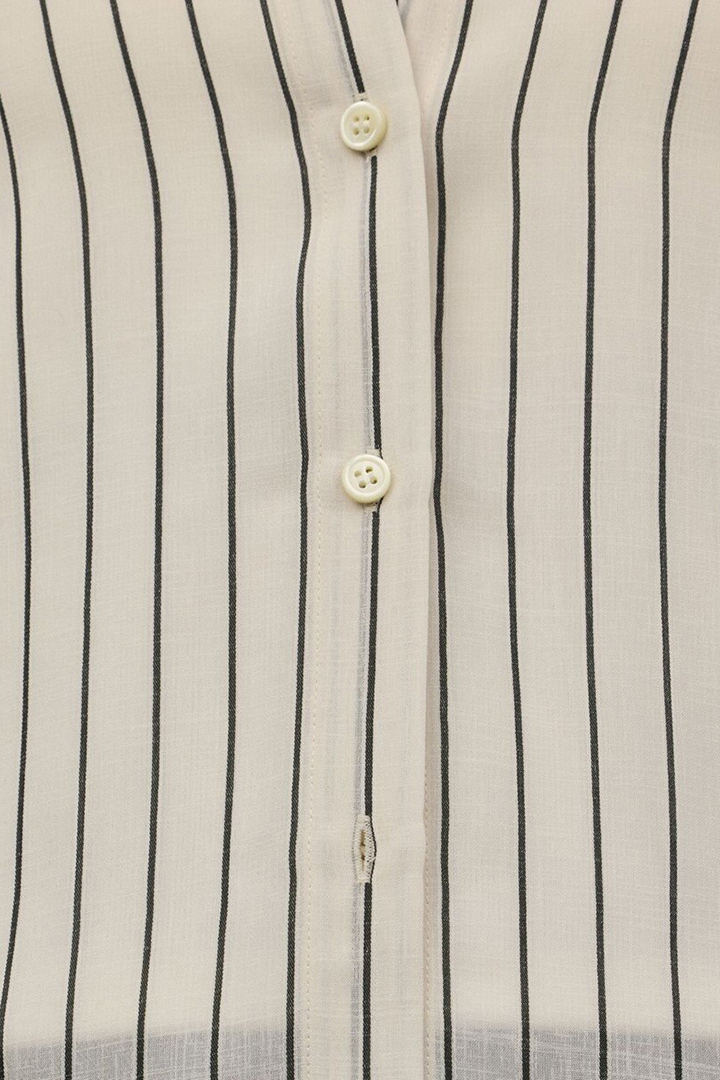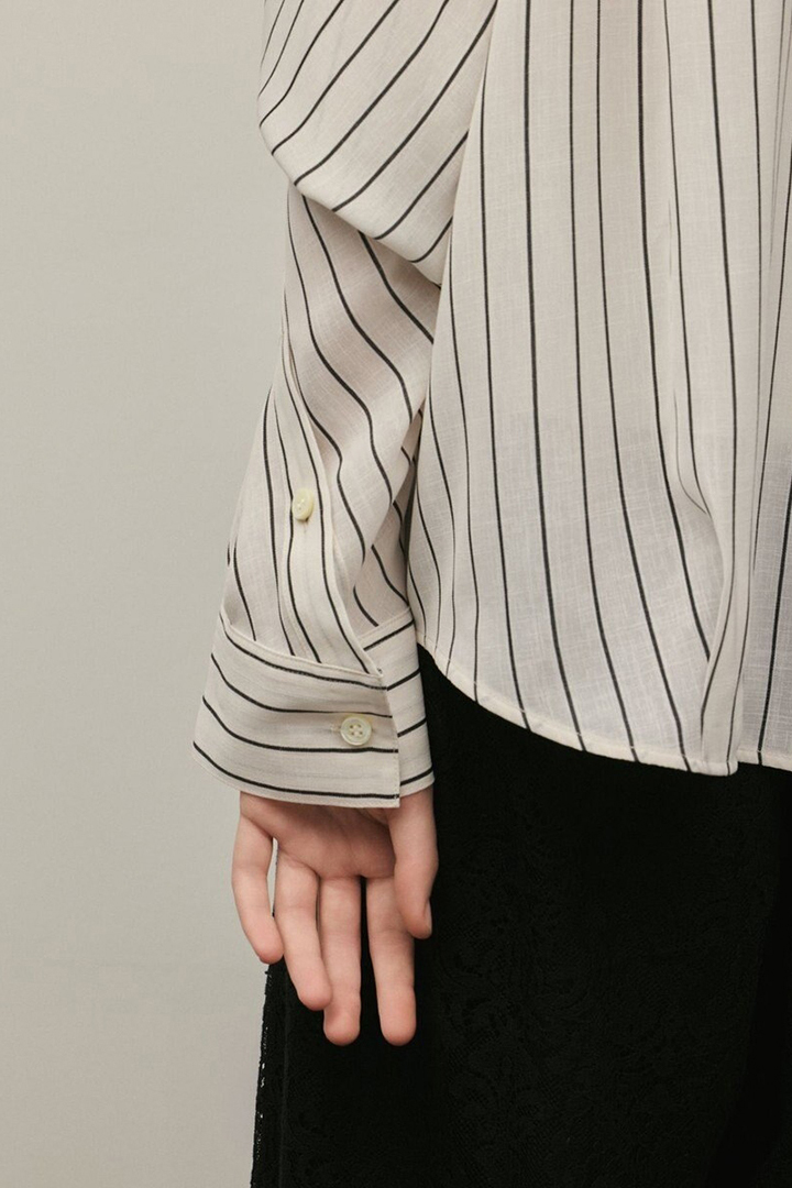 ホワイトはハリ感が少しあり、ストライプはよりとろみを楽しめる生地を使用しました。