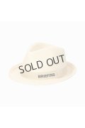 見る角度によって光沢感や色みに変化のあるBRIEFINGロゴがポイントのワイドハット。