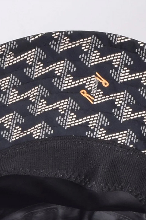 ツバ裏にはレザレクションの幾何学模様を全面にプリント。さりげなく柄が見えるくらいの、程よい大人感を演出する仕上がりに。