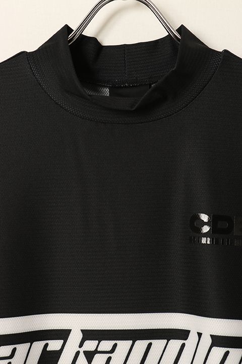 ペイズリーパターンをメインにダイナミックなグラフィックプリントを施したモックネックTシャツ。