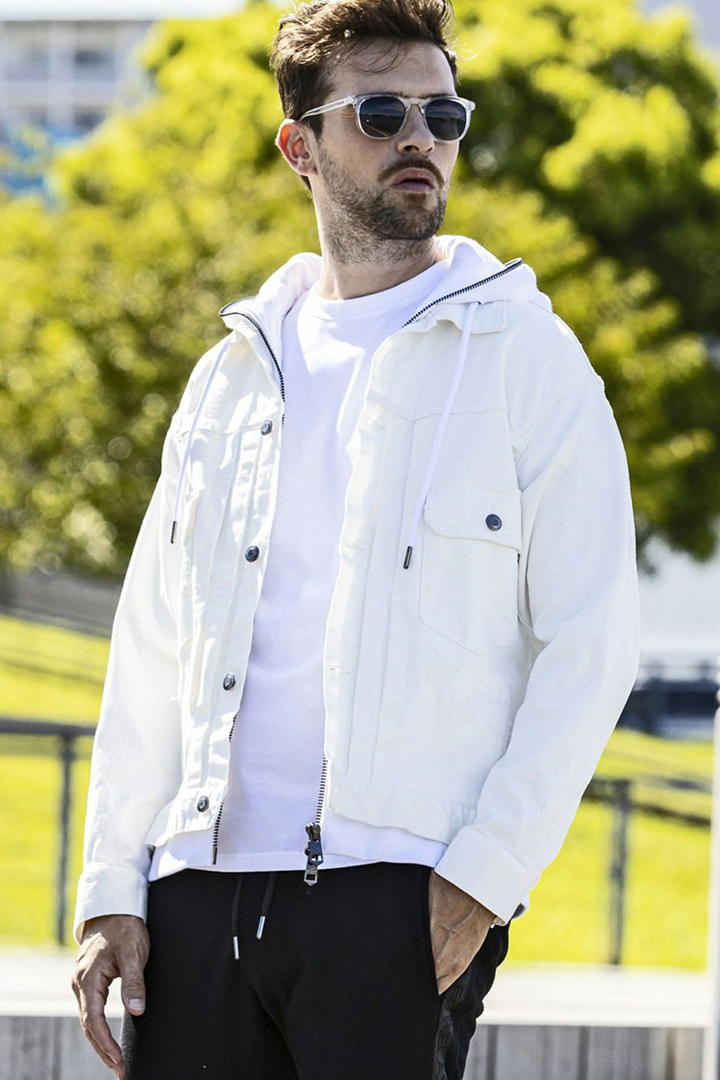 {SOLD}1piu1uguale3 RELAX ウノピゥウノウグァーレトレ リラックス デニムジャケットフーディー{-BES}[USO-25081-WHT]