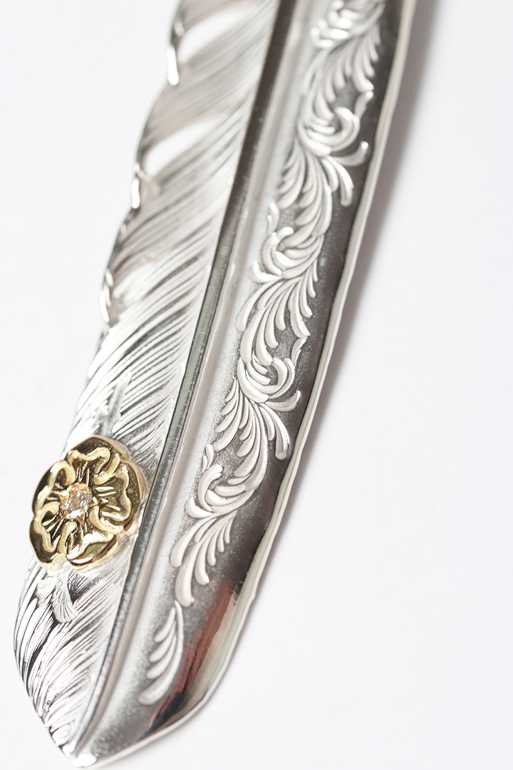 ホーム | Taro Washimi|タロウ ワシミ > feather L size{SOLD}Taro Washimi タロウ ワシミ 鷲見太郎 L arabesque flight feather 02/S K18 flower metal/diamond 2mm{-BES}{E-20}