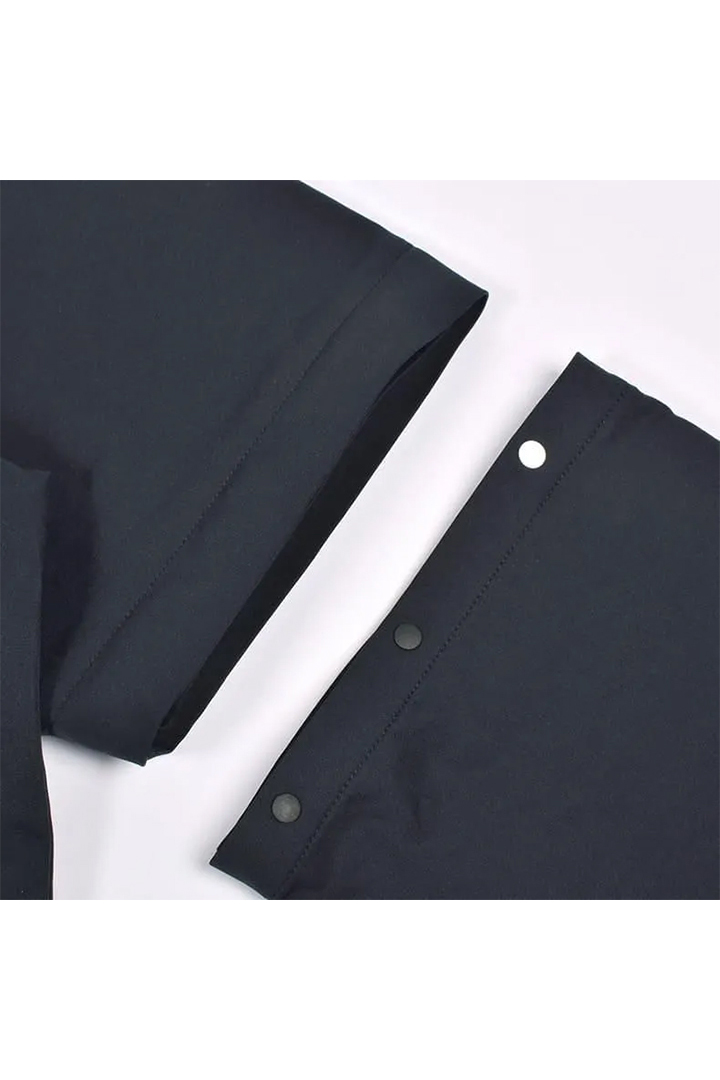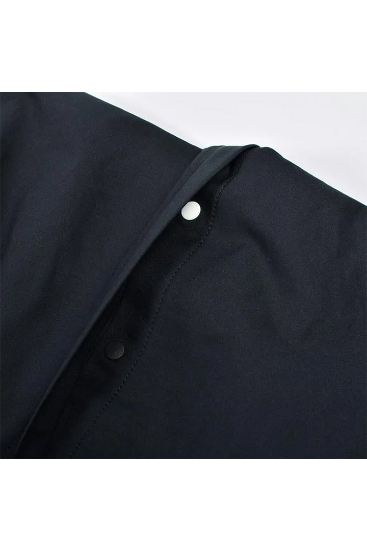 気になるレインウェアとの違いについてご説明いたします。レインウェアは通常、縫製した穴から水の侵入を防ぐ為、縫製をした裏側に止水テープ加工を施しますが、こちらのウェアは止水テープ加工を施していないので、「レインウェア」ではない点をご了承ください。
