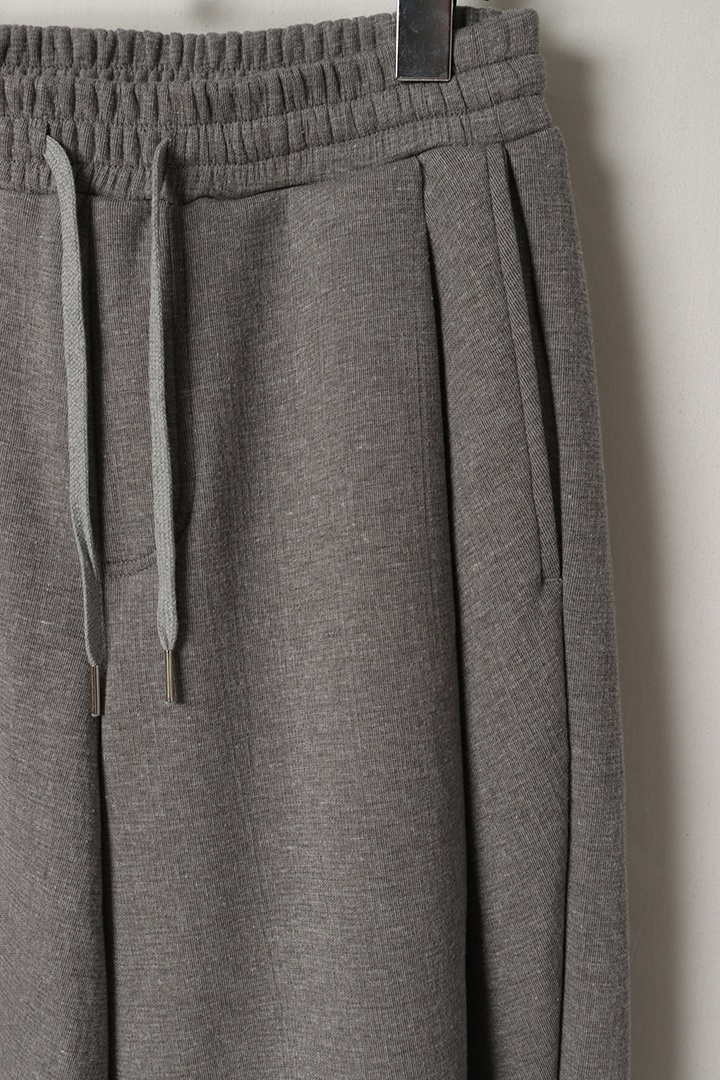 カジュアルな印象の従来のスウェットパンツをモード感のある雰囲気に仕上げています。