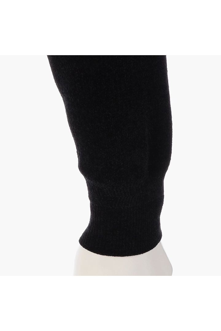 ・ふくらみ感のあるなめらかな肌触りのモール素材を編みたてたニットは、ほんのりと光沢を帯びた表情に。
