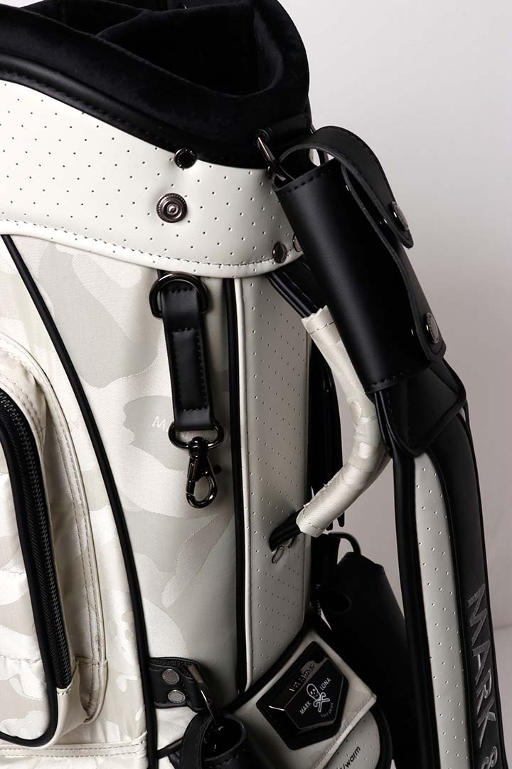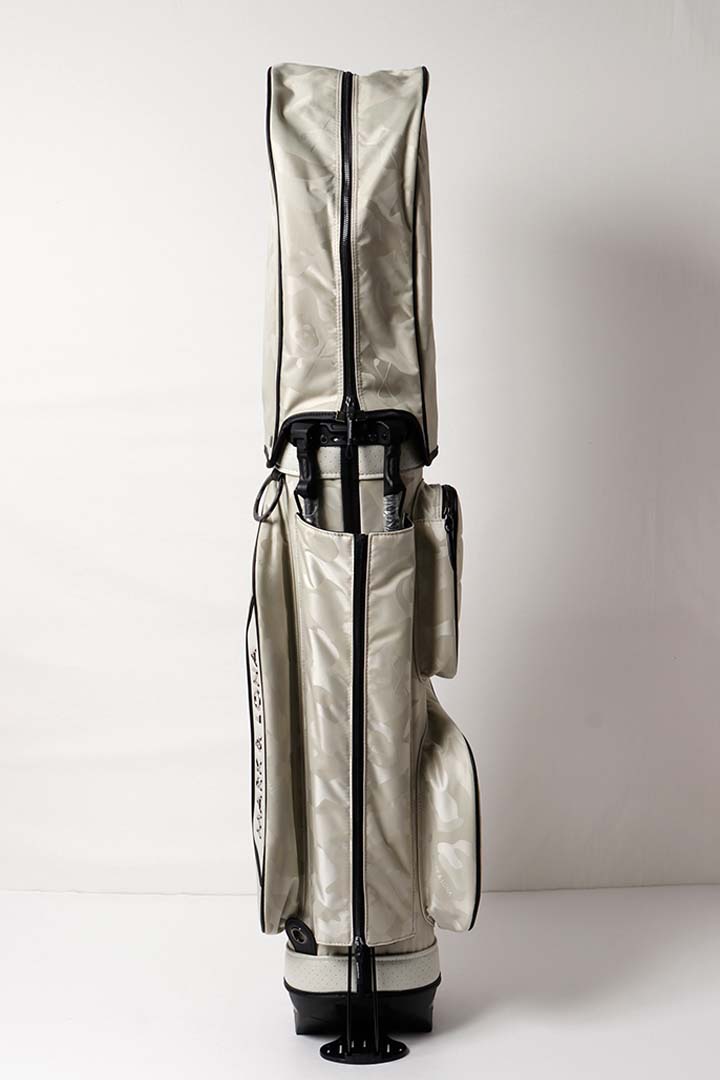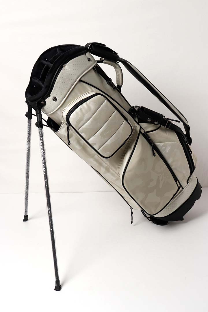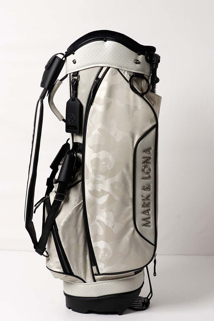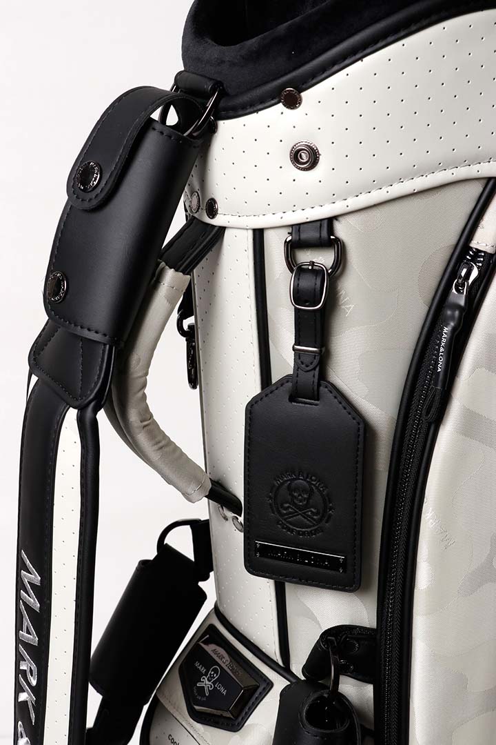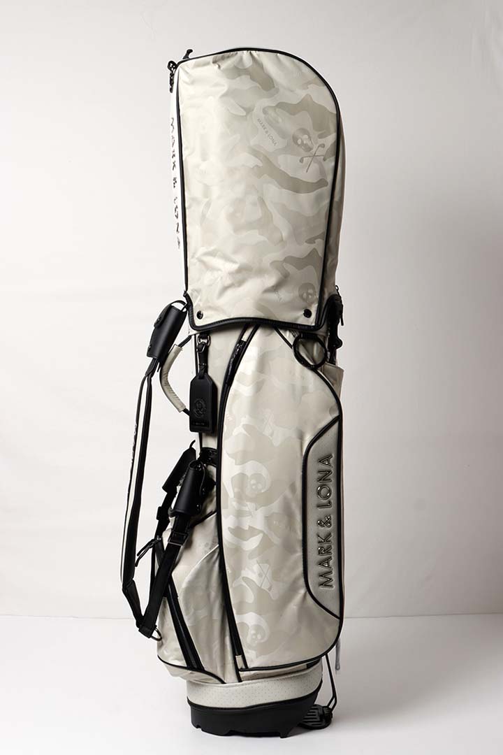 ブランドのシグニチャーであるスカルカモフラージュパターンが際立つ、軽量で機能的なスタンド式キャディバッグ。CORDURAナイロンとパンチングレザーのコンビネーションで耐久性に高級感をプラスしたデザイン。