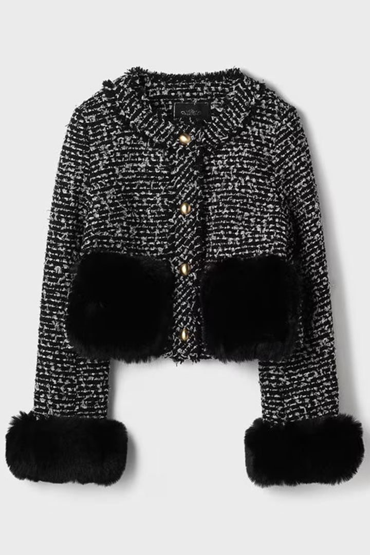 ポケットと袖口に添えたボリュームのあるふわふわのファーがポイントです。