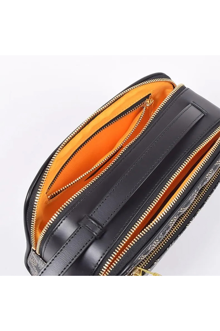内装はブランドを象徴するイエローファブリック。中が見やすく、必要なものをすぐに取り出せる視認性の高さもポイント。さらに、ファスナー付きセキュリティポケットも備え、貴重品の収納も安心です。