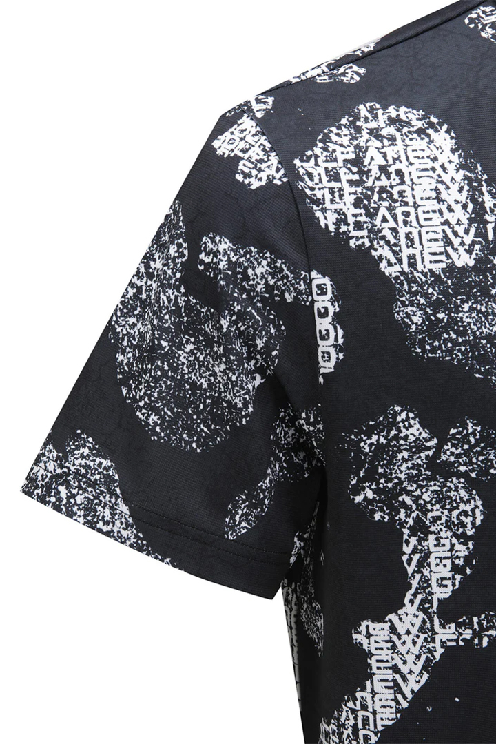 テクスチャーのある生地にパターンを適用したサマー半袖シャツ。汗をかいても張り付きにくく、涼しく快適に着用できます。シンプルなパンツとコーディネートすることで、ゴルフ場でより映えるアイテムです。インドア用途やアクティブシーンにも適しており、リゾートムードを演出できるデザインになっています。
