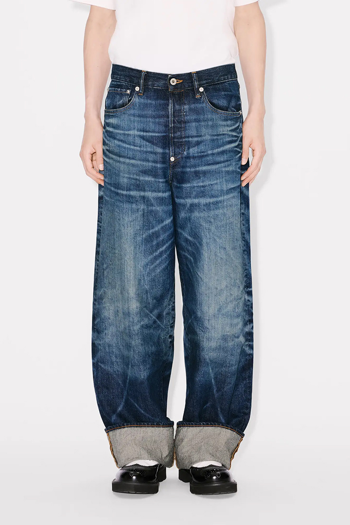 KENZO ケンゾー ターンアップ ワイド フィット ジーンズ ジャパニーズ デニム {-BEA}[FF65DP4216I7-DY]