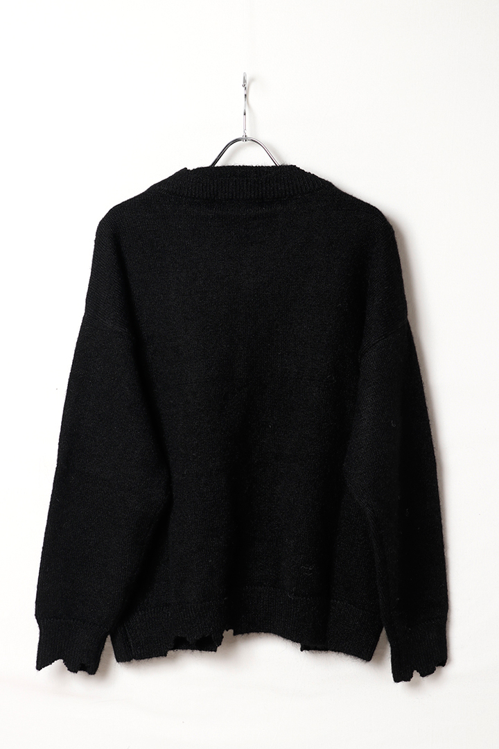 ekat エカット(UNISEX) DAMAGE V NECK KNIT{-BEA}[EMA2511265-BLK-2]
