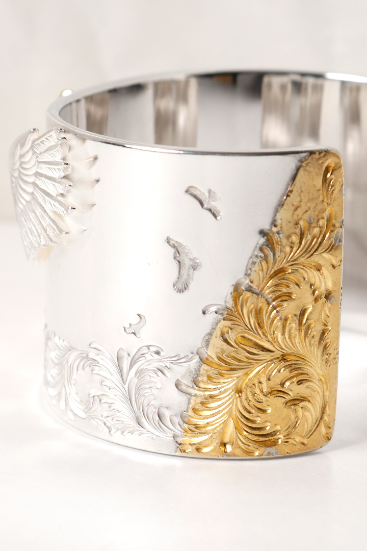 【☆超激レア】鷲見太郎氏の手彫りアラベスク 世界オンリーワンアイテム Taro Washimi タロウ ワシミ 鷲見太郎 eagle eg-03/K18・925 bangle with K24 arabesque design[WT-202511_11-F]