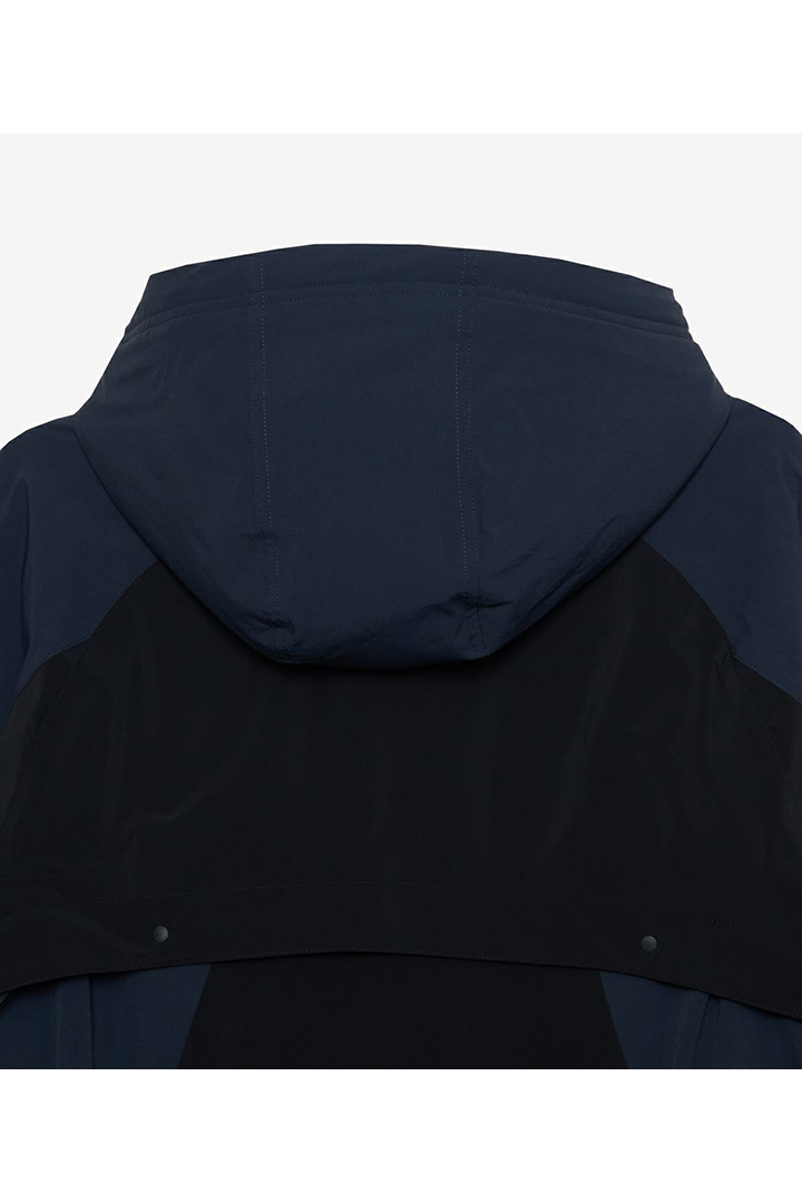 本体には、撥水性と快適なストレッチ性に優れたリサイクルナイロンの2WAYストレッチ素材を採用。脇・背中・肩部分には、しなやかな伸びと撥水性を兼ね備えたナイロン2WAY素材を切り替えで配置し、デザインアクセントとパフォーマンス性を両立しています。裏地には、吸汗速乾・遮熱・軽量性に優れた高異型特殊断面ポリエステル「OCTA」を使用し、保温性と通気性を確保しながら衣服内を快適にキープします。