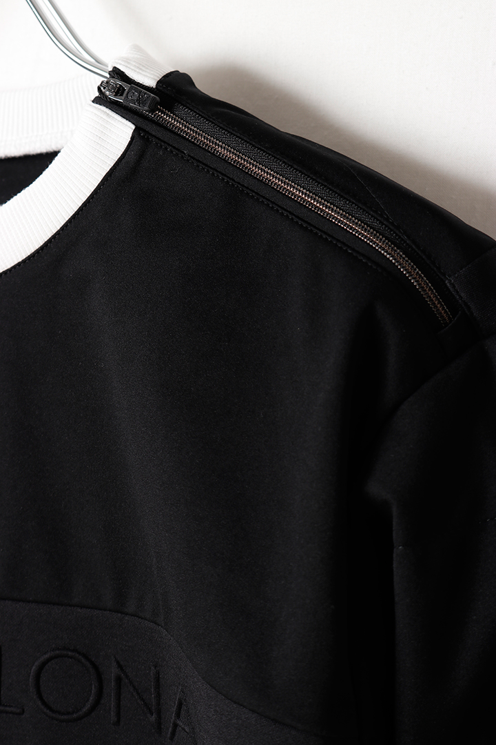 ・ショルダーラインにはファスナーを配し、スムーズな着脱をサポート