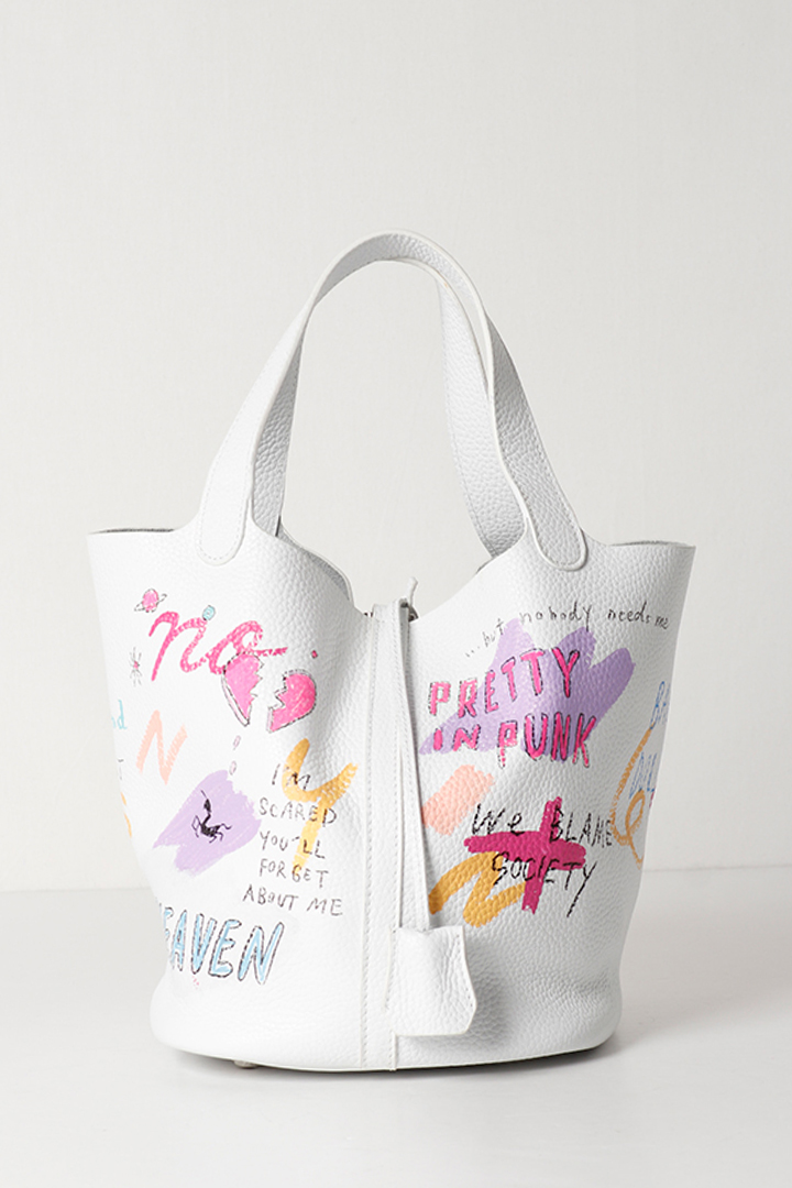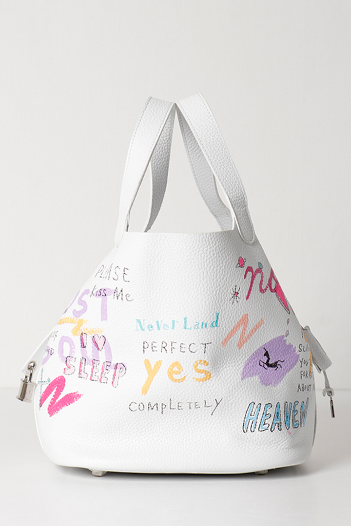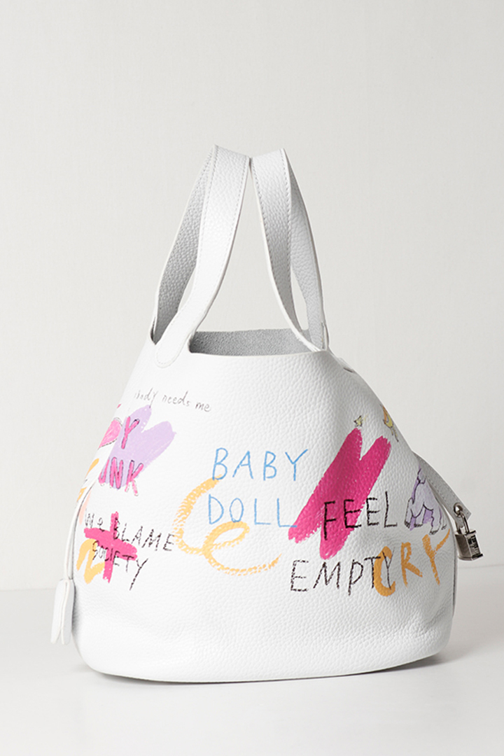 アーティスト、乾シンイチロウ(Shinichiro Inui)によりハンドペイントが施されたレザーバッグ。