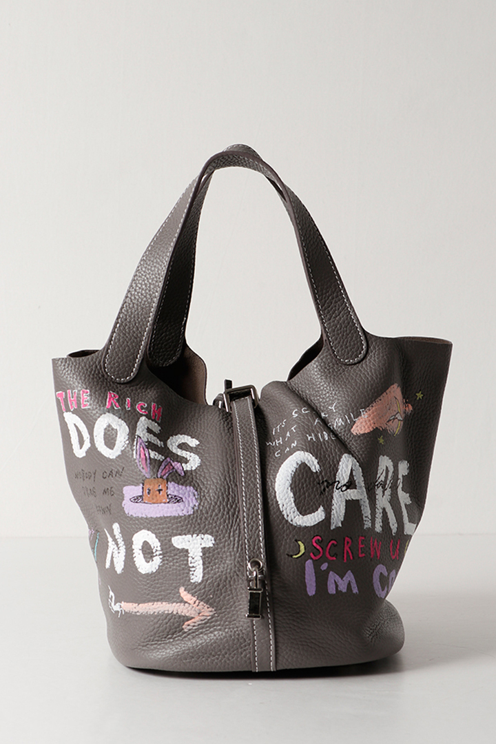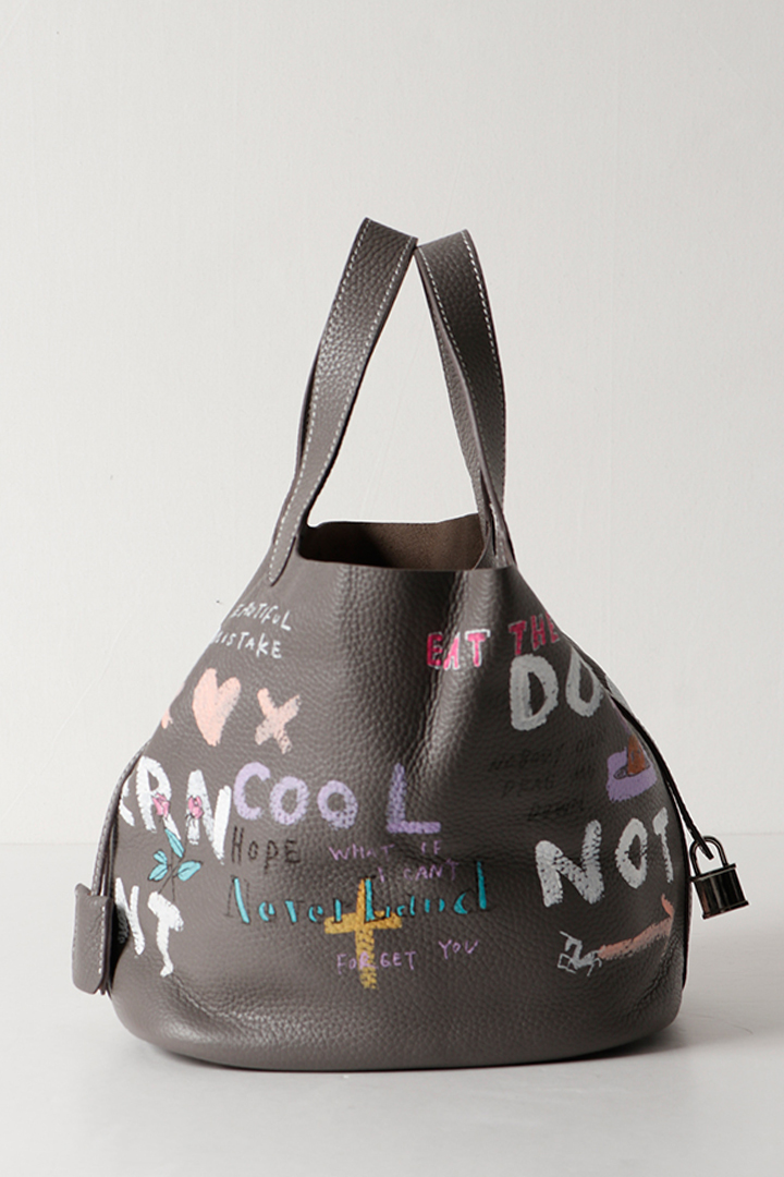 アーティスト、乾シンイチロウ(Shinichiro Inui)によりハンドペイントが施されたレザーバッグ。