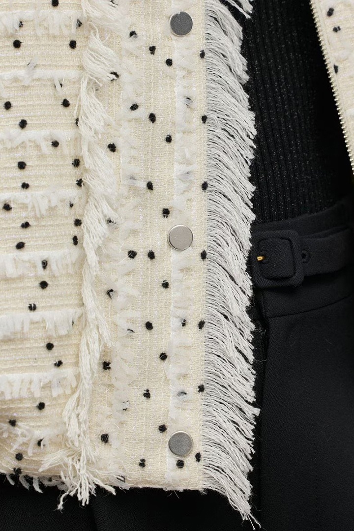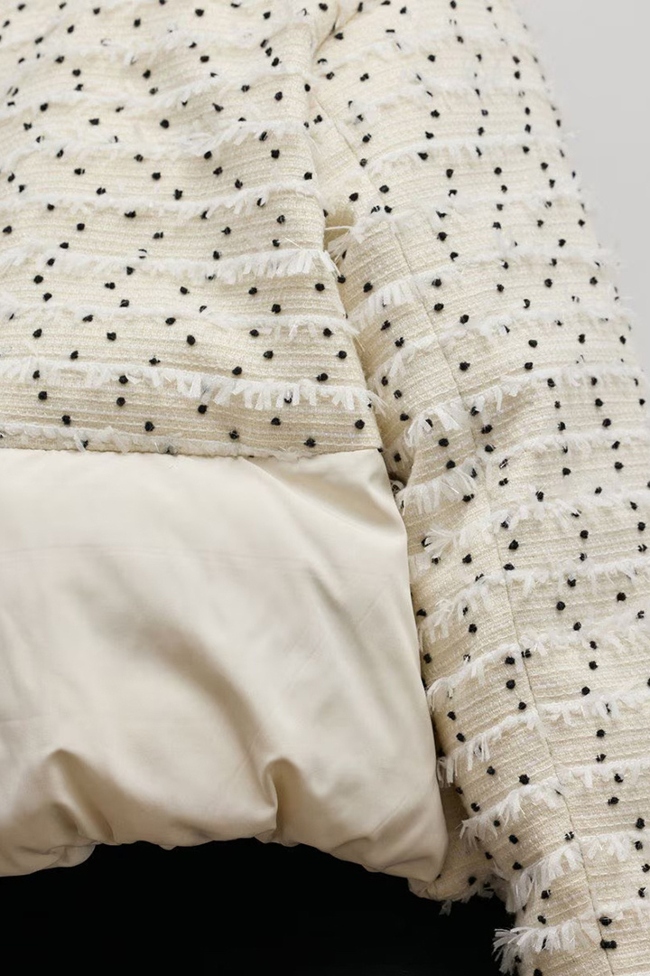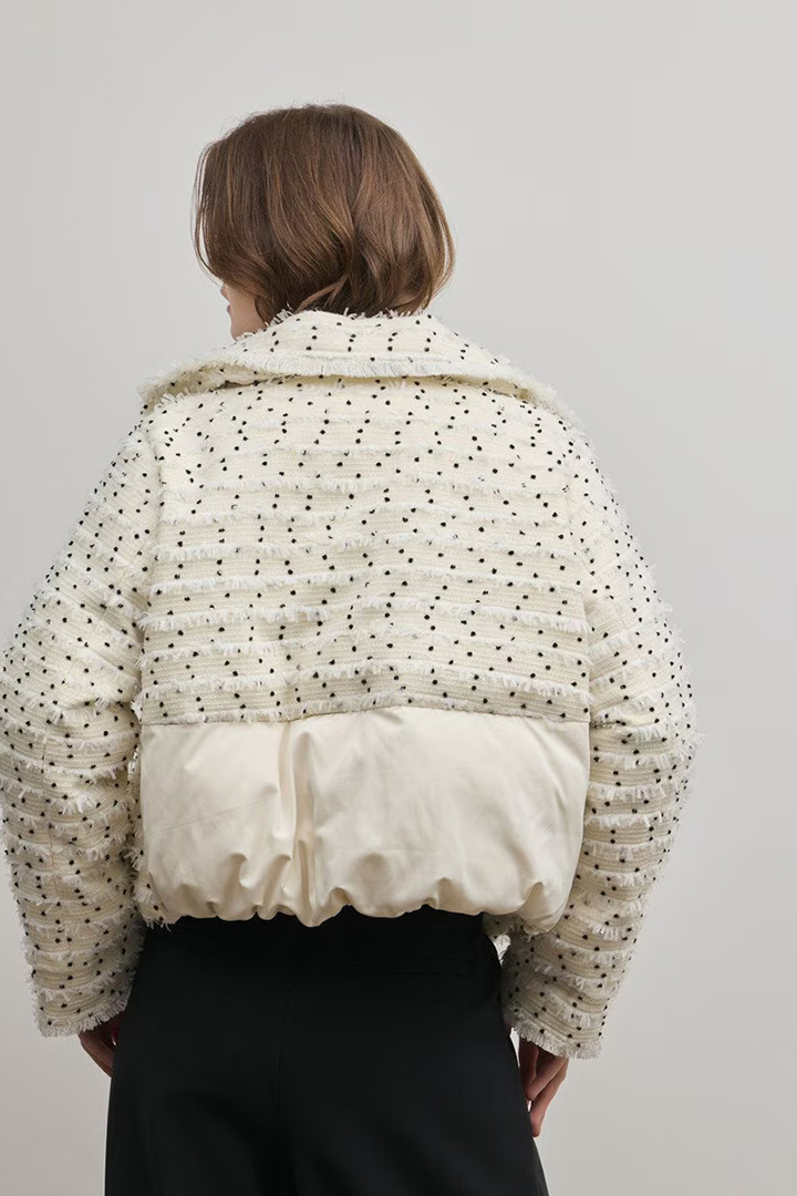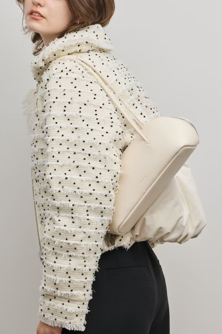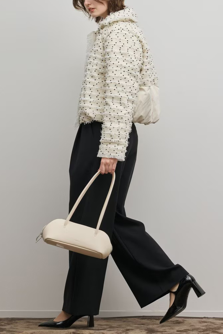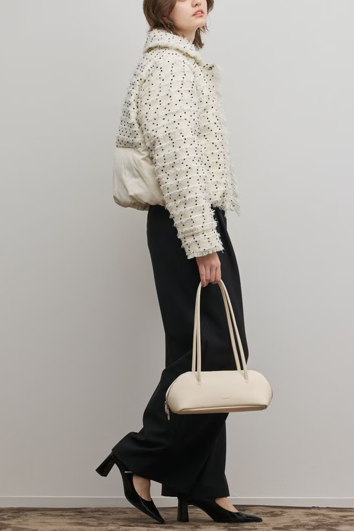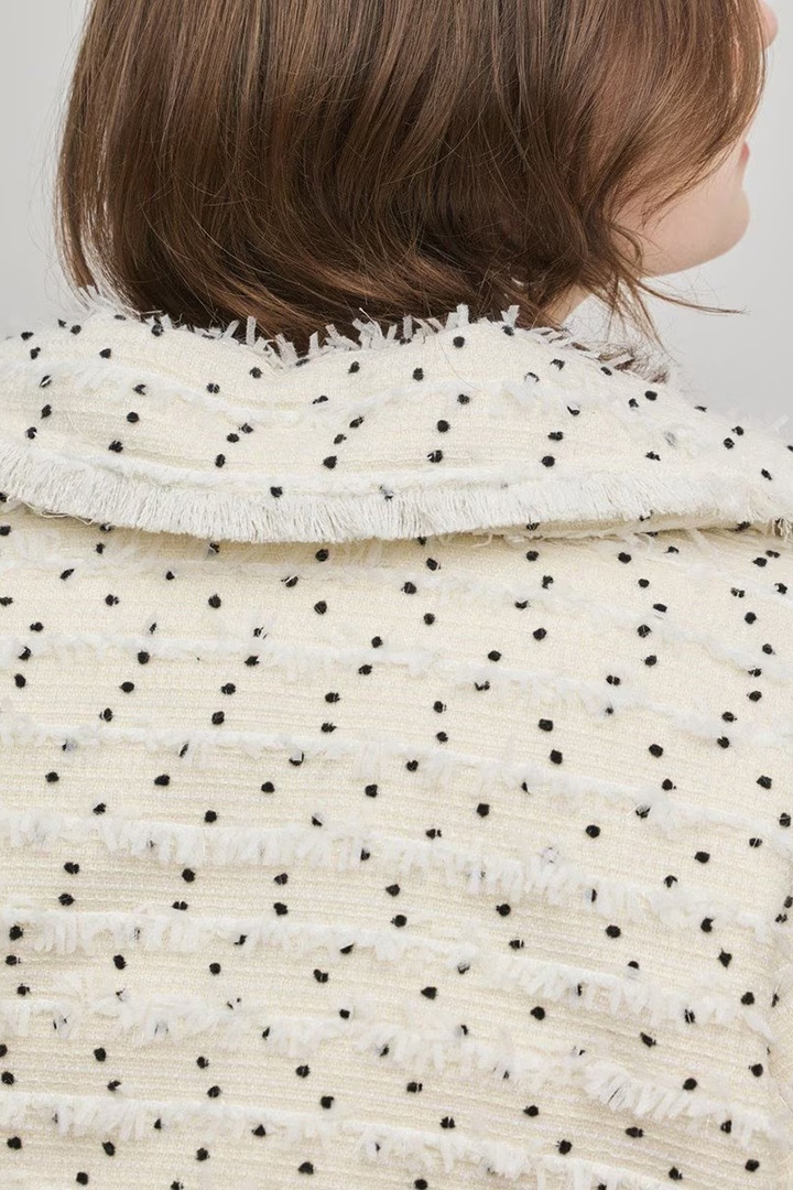 シーズンスタイルを盛り上げてくれる、一際目を惹く表情豊かなドットツイード素材を使用。