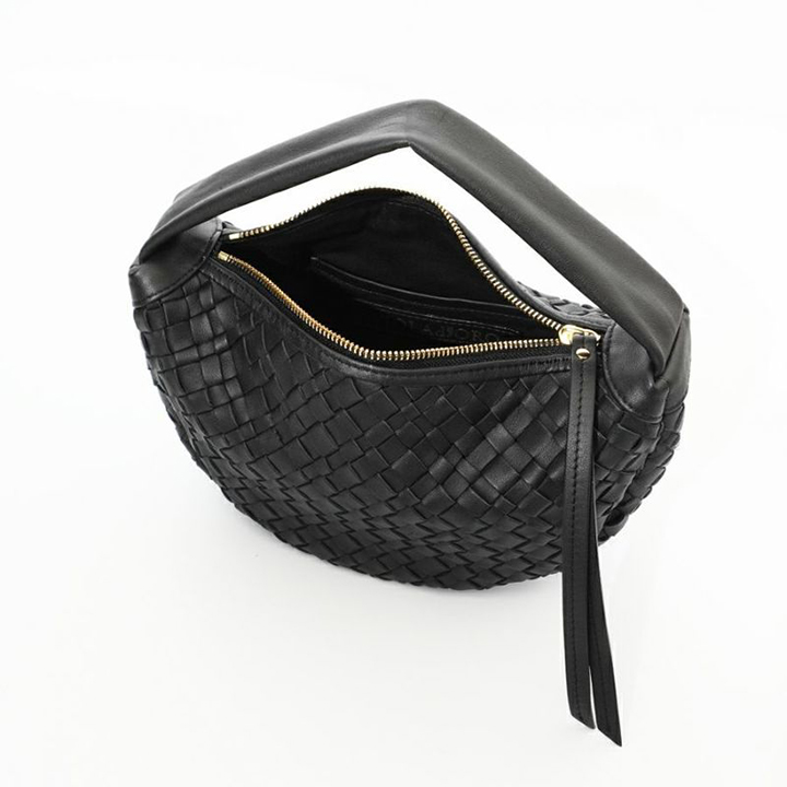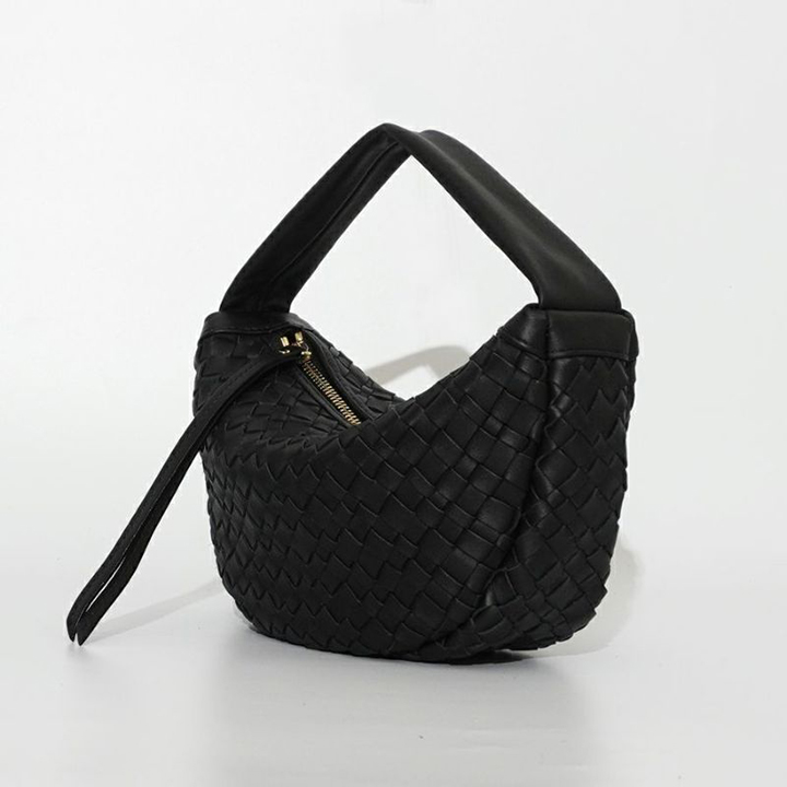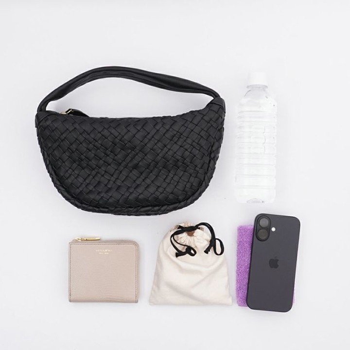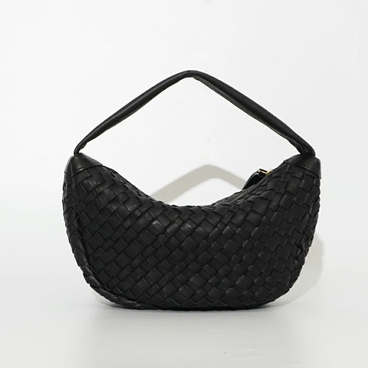 レザーをメッシュに編み込んだ三日月バッグ。