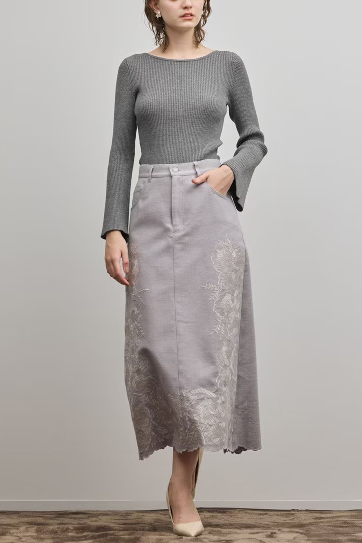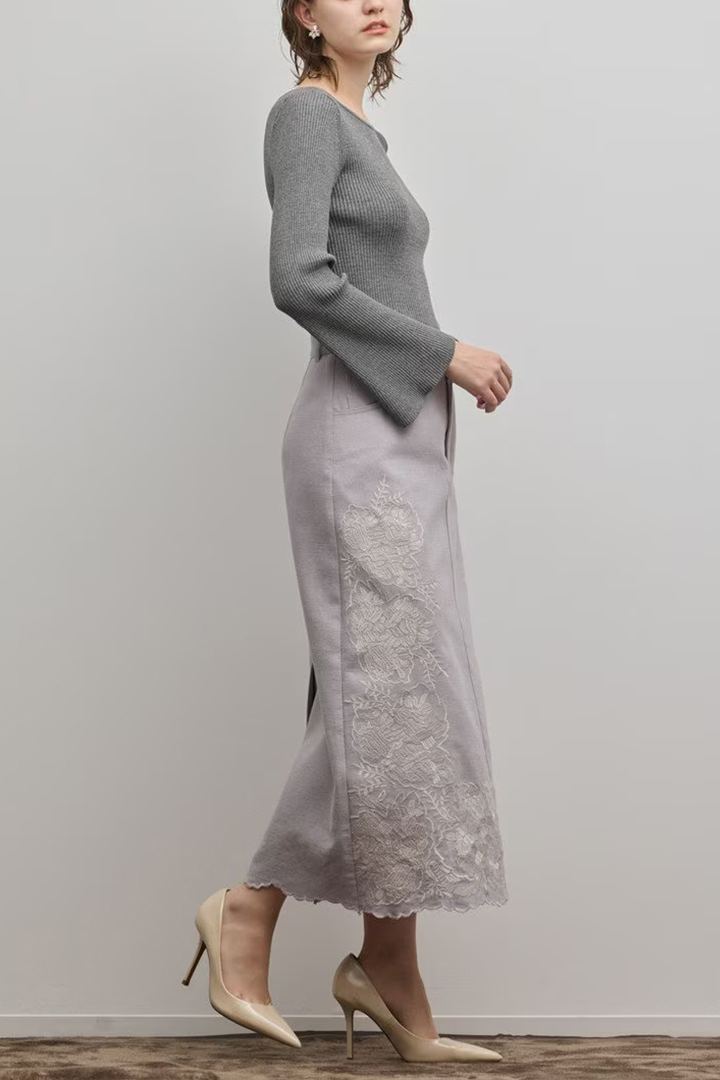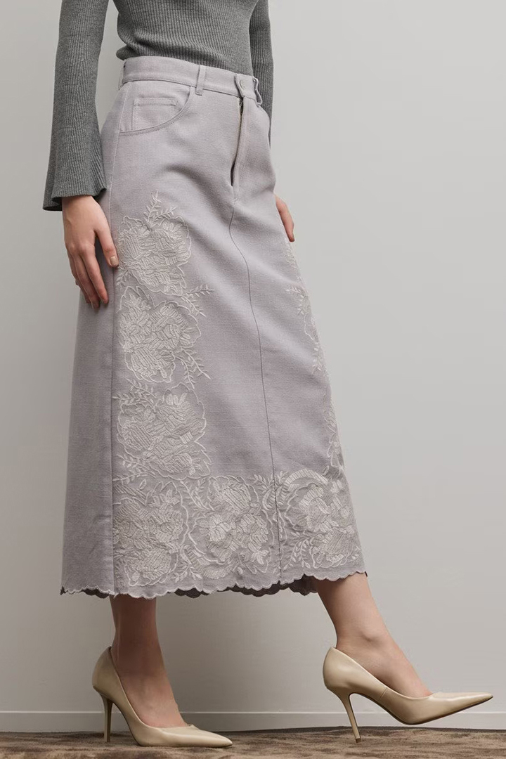刺繍で魅せる大人のタイトスカート。