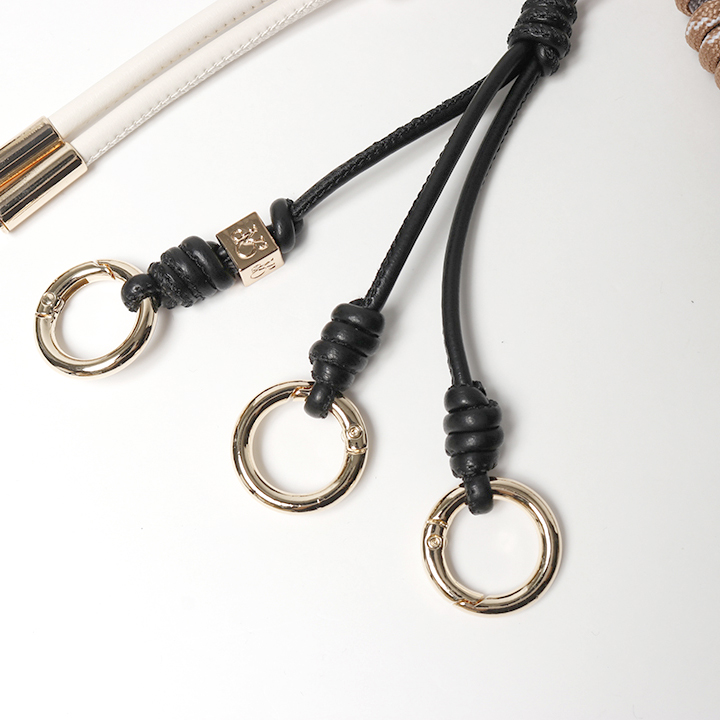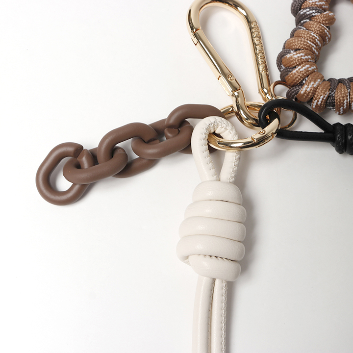 レザーコードとカナビラ付きチャーム、アクリルチェーンがセットになっています。