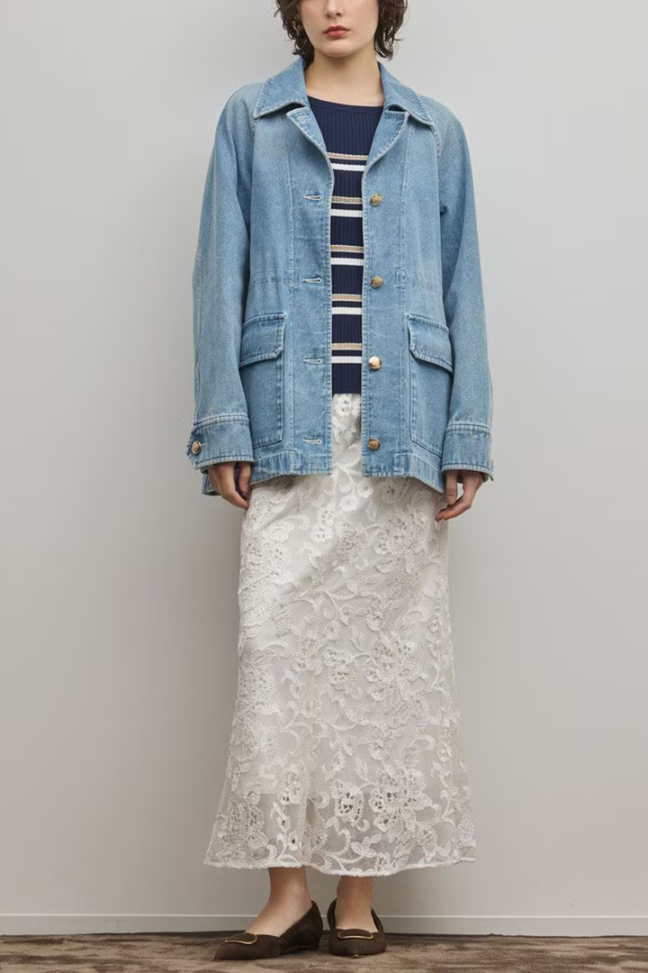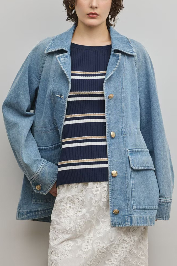メンズライクな風格がありながら、どこか品のあるシルエットと大きめのメタルボタンが、大人のこなれたカジュアルスタイルを叶えます。