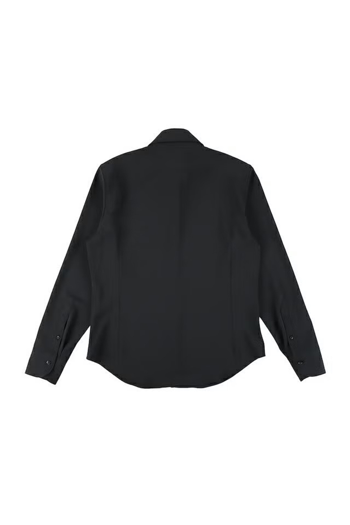 襟先の広がったホリゾンタルカラーを採用したプレーンシャツ。
