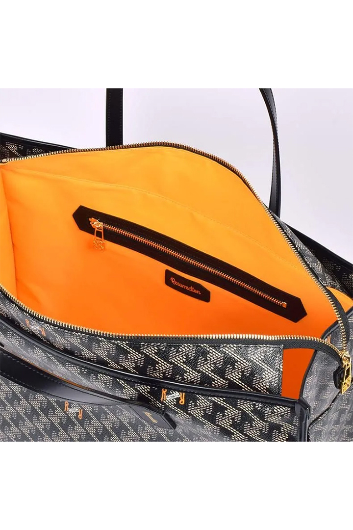 コバ部分には、贅沢に本革を使用したヘリ巻きを採用。バッグ全体を引き締めるアクセントとなるだけでなく、型崩れしにくいという実用面でも優れたディテールです。