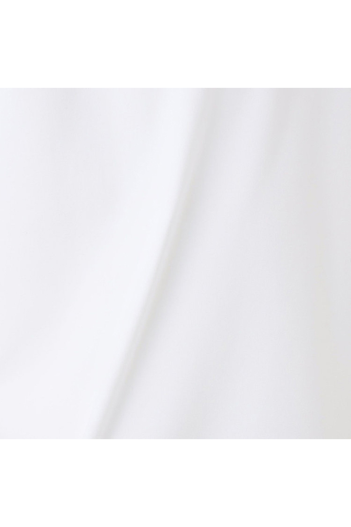 高密度に編み上げた生地に高弾性糸を配置することで、たらつきにくく、織物のようなハリ・コシとニットならではの伸縮性を両立しています。