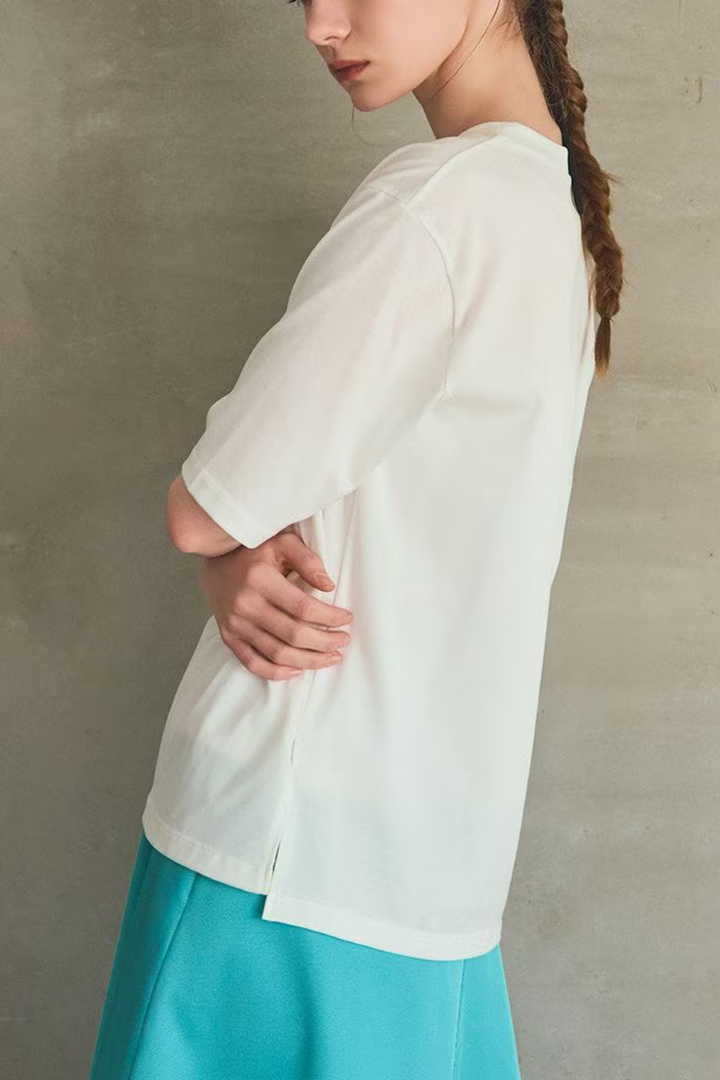ゆったりとした抜け感溢れるシルエットに、サイドスリットをさりげなく施して大人のニュアンス感をプラスしました。