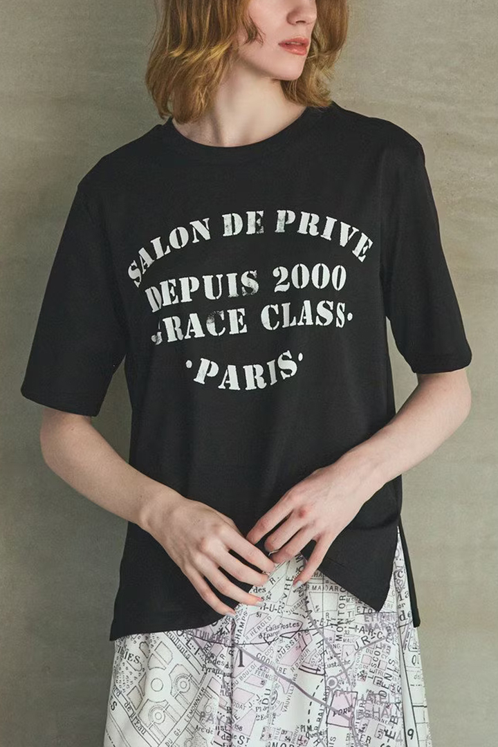 シーズンテーマ「Salon de priv?」を、ストリートムード漂うステンシル調プリントで表現した、Grace Classらしいこなれ感のあるデザイン。