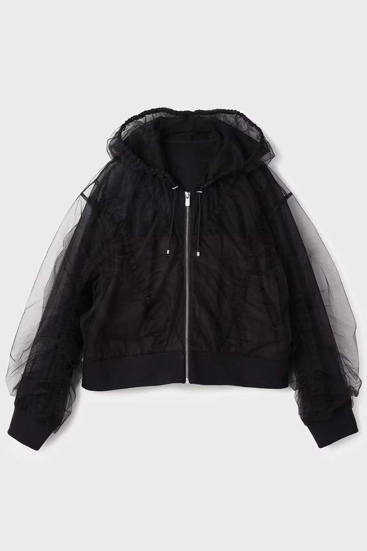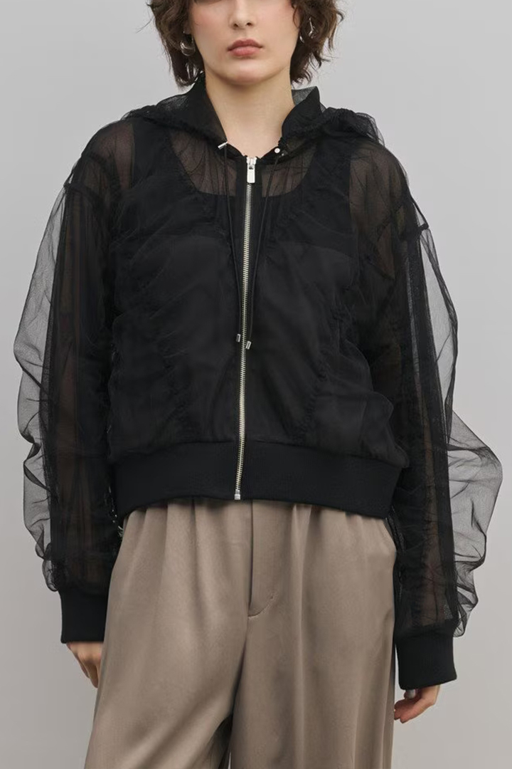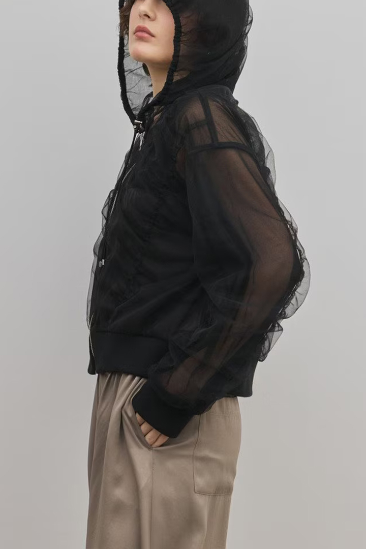 春の訪れと共に着たい、シアー素材の軽やかなパーカーブルゾン。