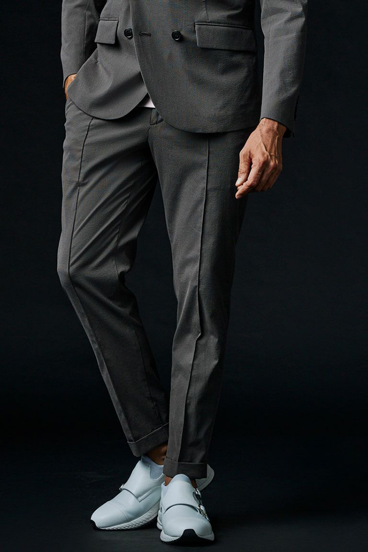 1PIU1UGUALE3が得意とするシャープで美しいシルエットに加え高機能ストレッチ素材と3Dパターン&立体裁断により細身ながらストレスのない着心地をキープしてくれます。