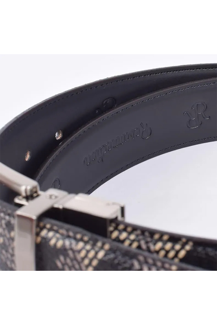 なんと言っても人気なのが、先端から末端までオリジナルの幾何学模様のPVC生地を使用したベルト。ラグジュアリー感を演出し、他にはない唯一無二なアイテムとなっています。