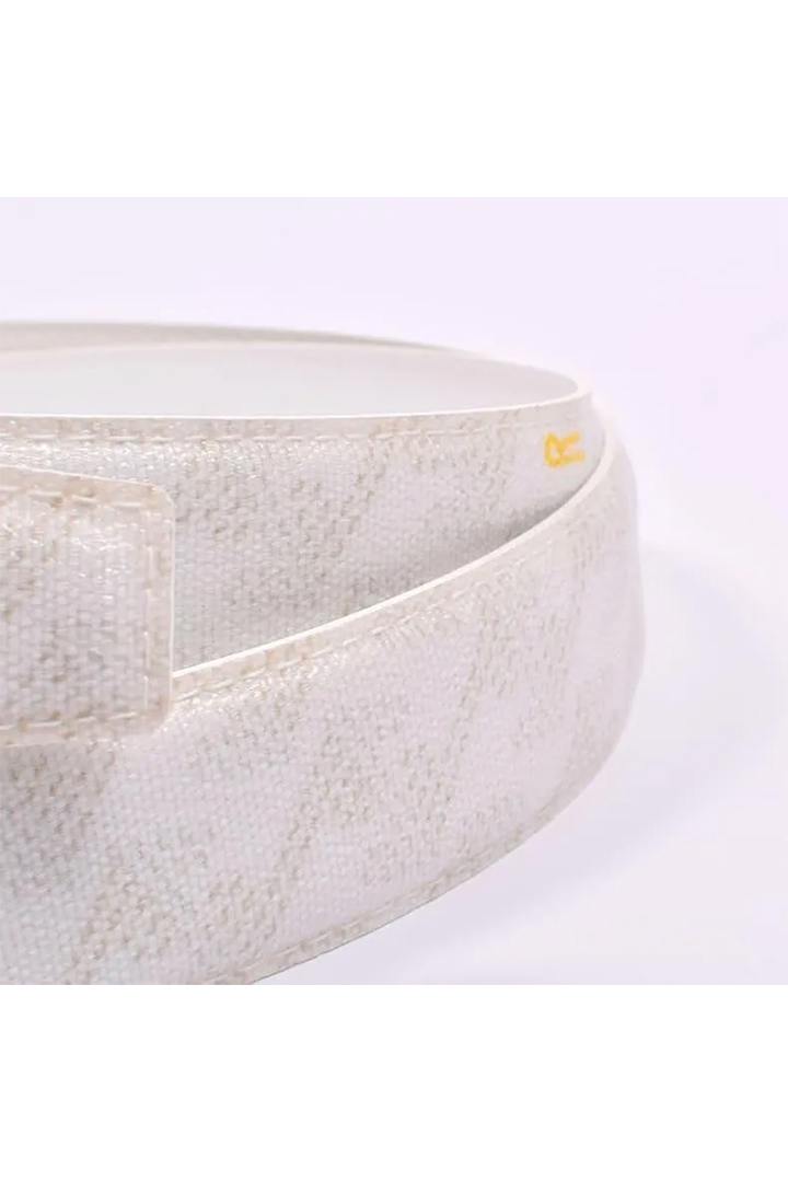 なんと言っても人気なのが、先端から末端までオリジナルの幾何学模様のPVC生地を使用したベルト。ラグジュアリー感を演出し、他にはない唯一無二なアイテムとなっています。