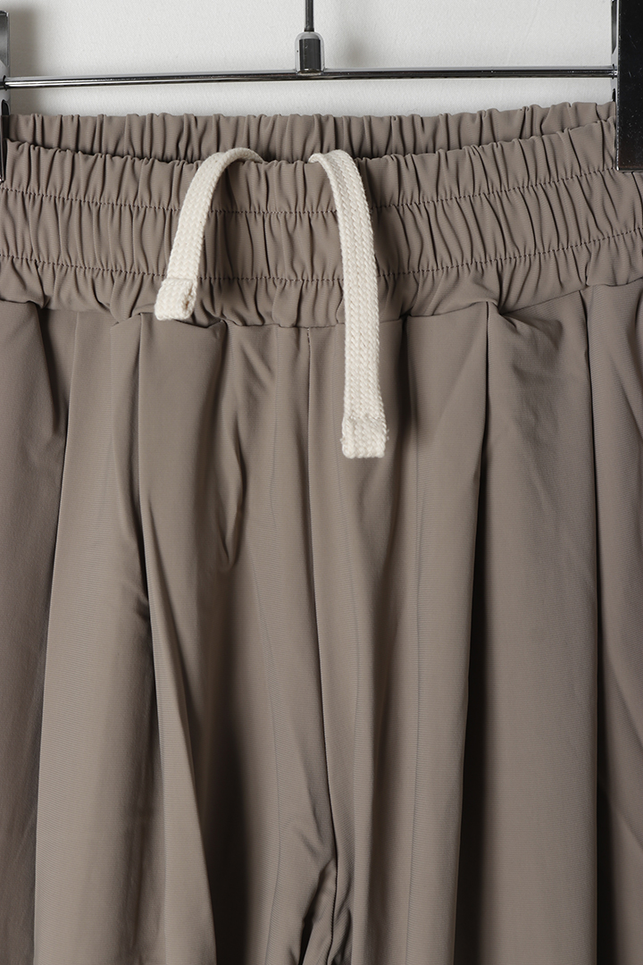 一見カジュアルなデザインながら、深めのツータックが生み出す美しいドレープと、ダブル仕立ての裾によって、さりげない上品さを演出します。