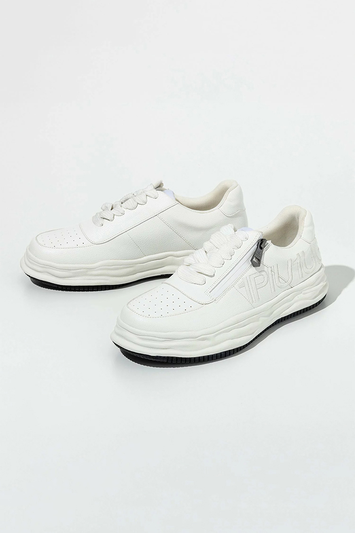 波打つような個性的なアウトソールが目を引くロゴスニーカー。