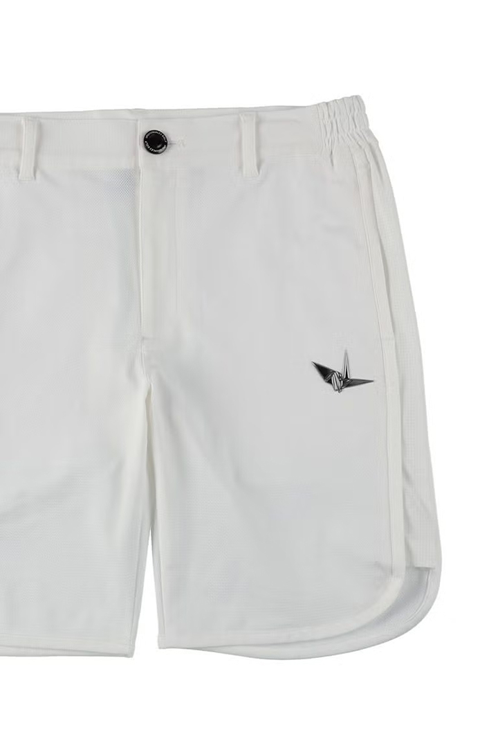 氷の息吹を纏う。真夏のフィールドを軽快に駆ける「冷感ハイテック・ショーツ」触れた瞬間に体感温度を下げる「冷感メッシュ」を採用したハイパフォーマンス・ショーツ。裾を緩やかにラウンドさせることで脚のラインを美しく見せ、スムーズな足運びを実現しました。前身頃の右側には1PIU1UGUALE3ロゴ、左側にはブランドの象徴である「鶴」ロゴを、後ろ身頃には113Gのロゴを配置しています。バックスタイルにおいても妥協のないアイデンティティを確立。ウエスト部分にはアジャスター付きのゴムを仕込んだ仕様を採用。高いフィット感とともに、プレー中の腹部への圧迫感を軽減し、常に最適なサイズ感での着用を可能にしました。最先端の涼感テクノロジーと1PIU1UGUALE3 GOLF独自の洗練されたカッティングが融合し、過酷な猛暑の中でも圧倒的な快適さと躍動感溢れるスタイルを約束します。