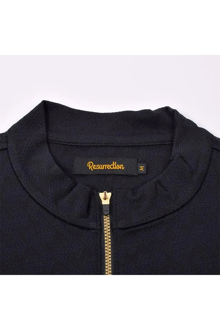 レザレクション|Resurrection メンズ GMジャガードハーフジップシャツ{-BFS}[RRST-IN02-M-BLK]