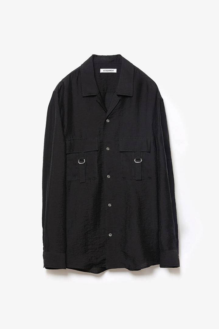 ATTACHMENT アタッチメント リヨセル/シルク ローン パッチポケットオープンカラーL/Sシャツ{-BFS}[AS61-084-BLK-3]