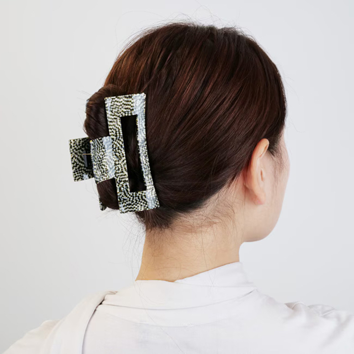 フランスの工場でハンドメイドで作られた、セルロースアセテート素材のヘアクリップ。