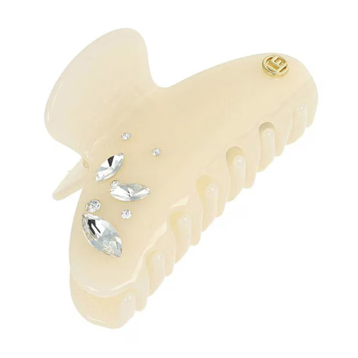透け感のあるクリップにクリスタルをあしらった上品なヘアクリップ。
