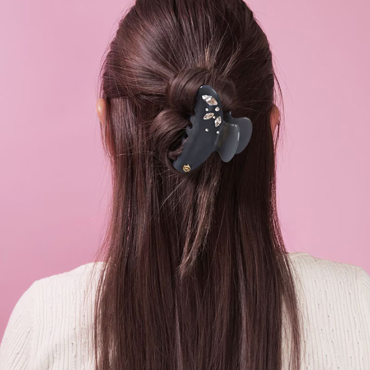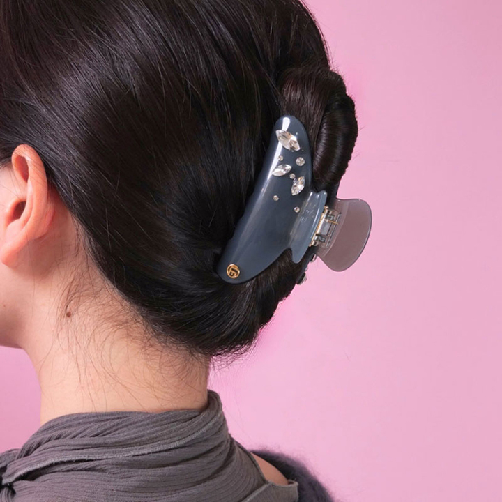透け感のあるクリップにクリスタルをあしらった上品なヘアクリップ。