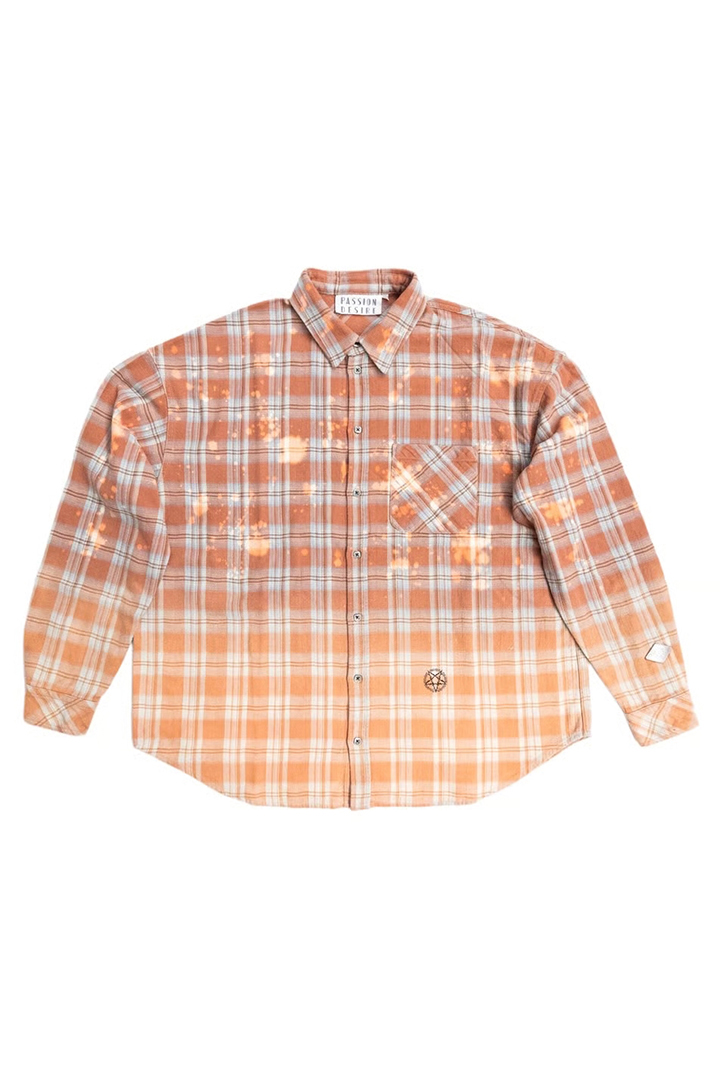 COTTON FLANNEL CHECK BLEACH SHIRT{-BFS}[PD26SS02-RED-4]
